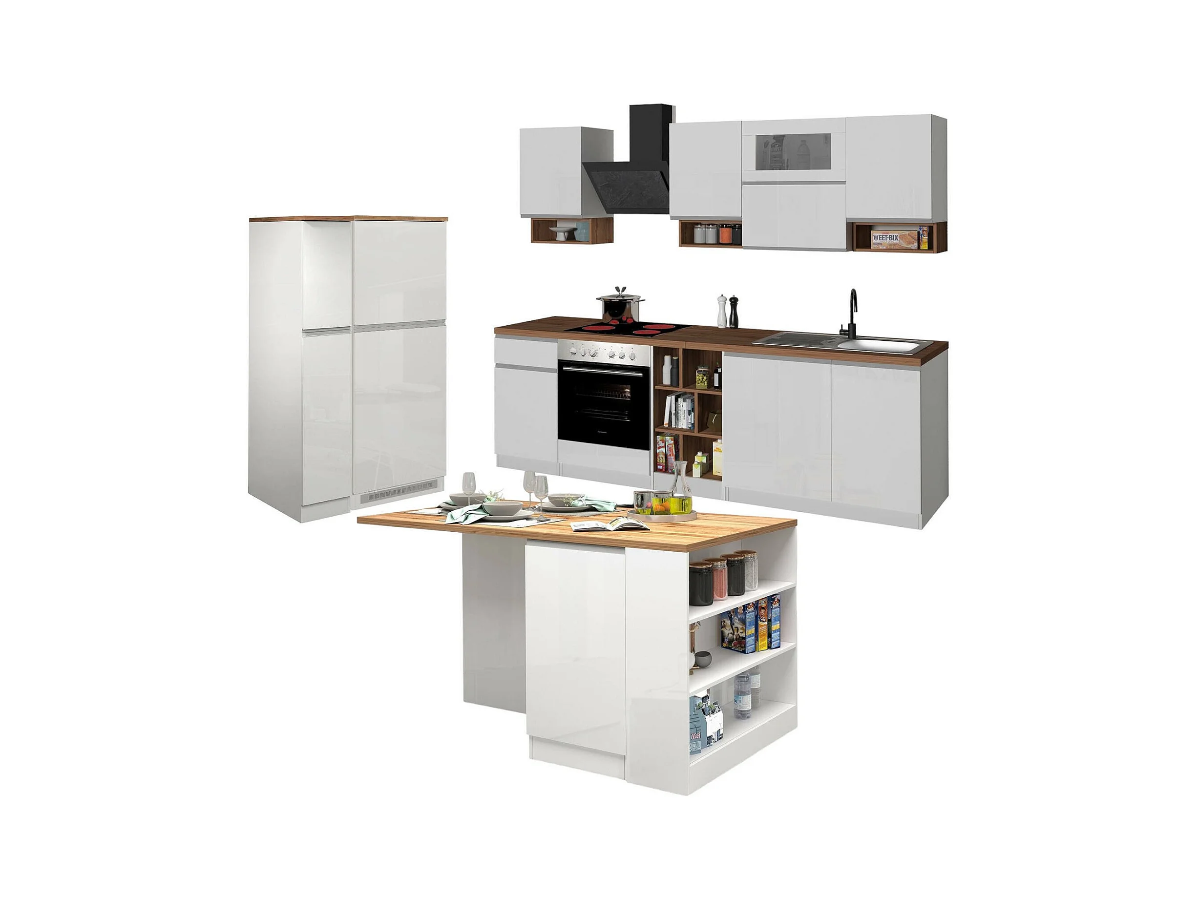 Dmora - Cucina completa Attimis, 255x60h85 cm, Bianco lucido e Rovere