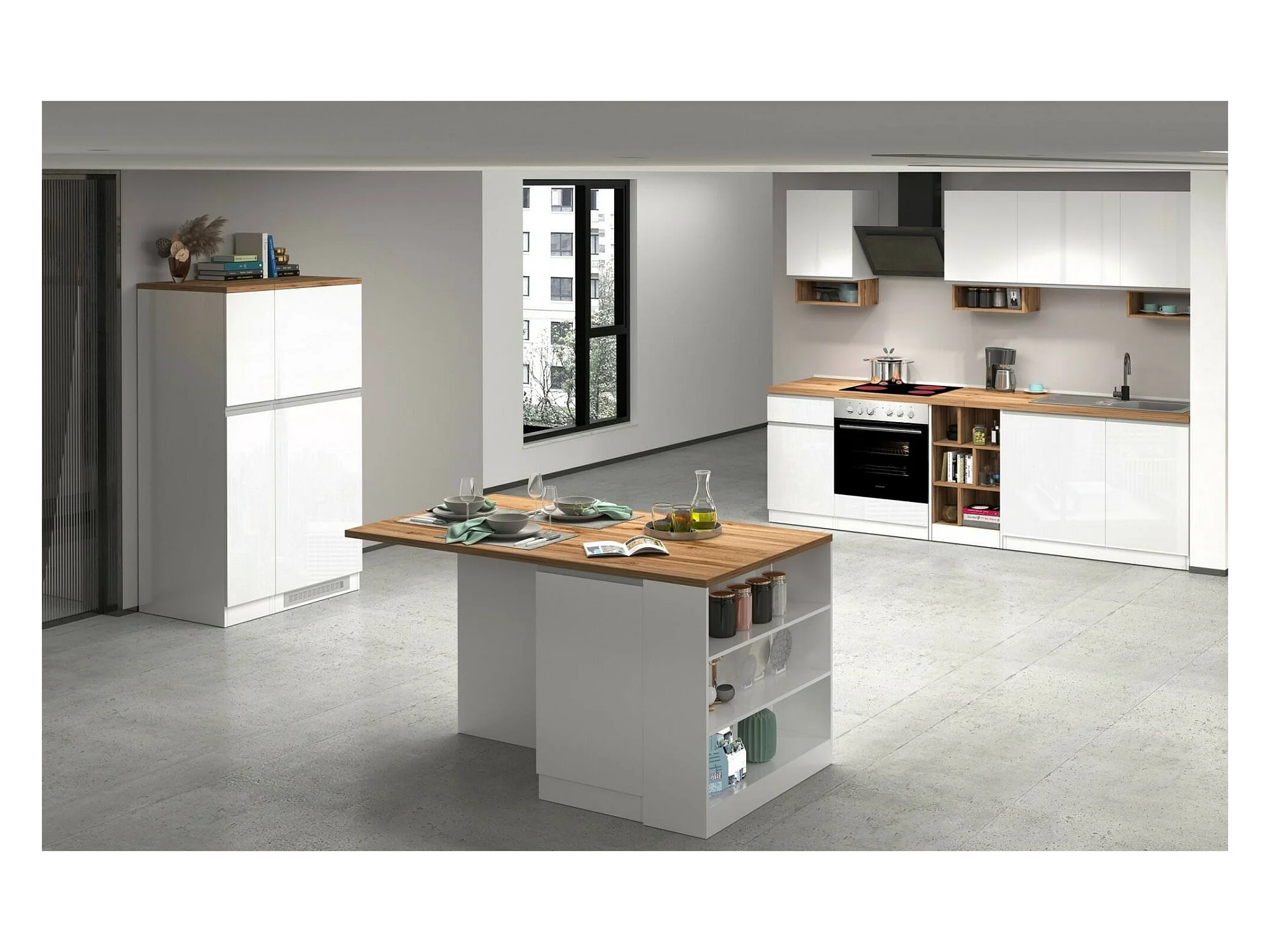 Cucina bianca opaca con piano di lavoro in rovere Sonoma CORVUS