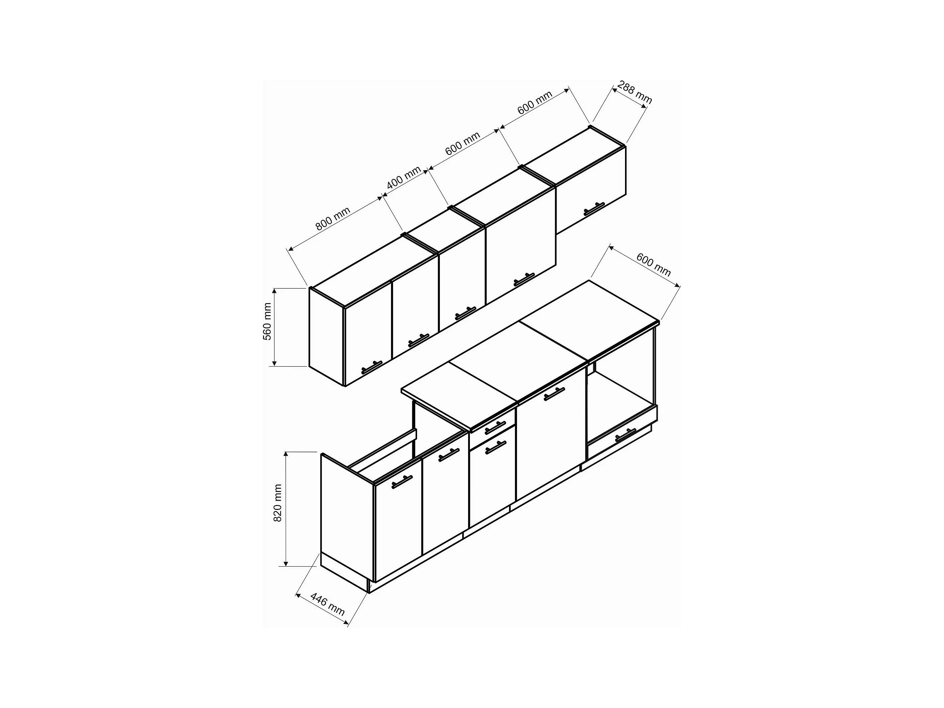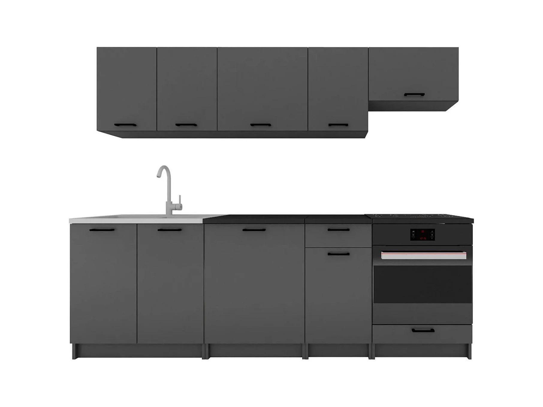 Cucina completa Rosta, Set compatto e funzionale con ante e cassetto, Antracite