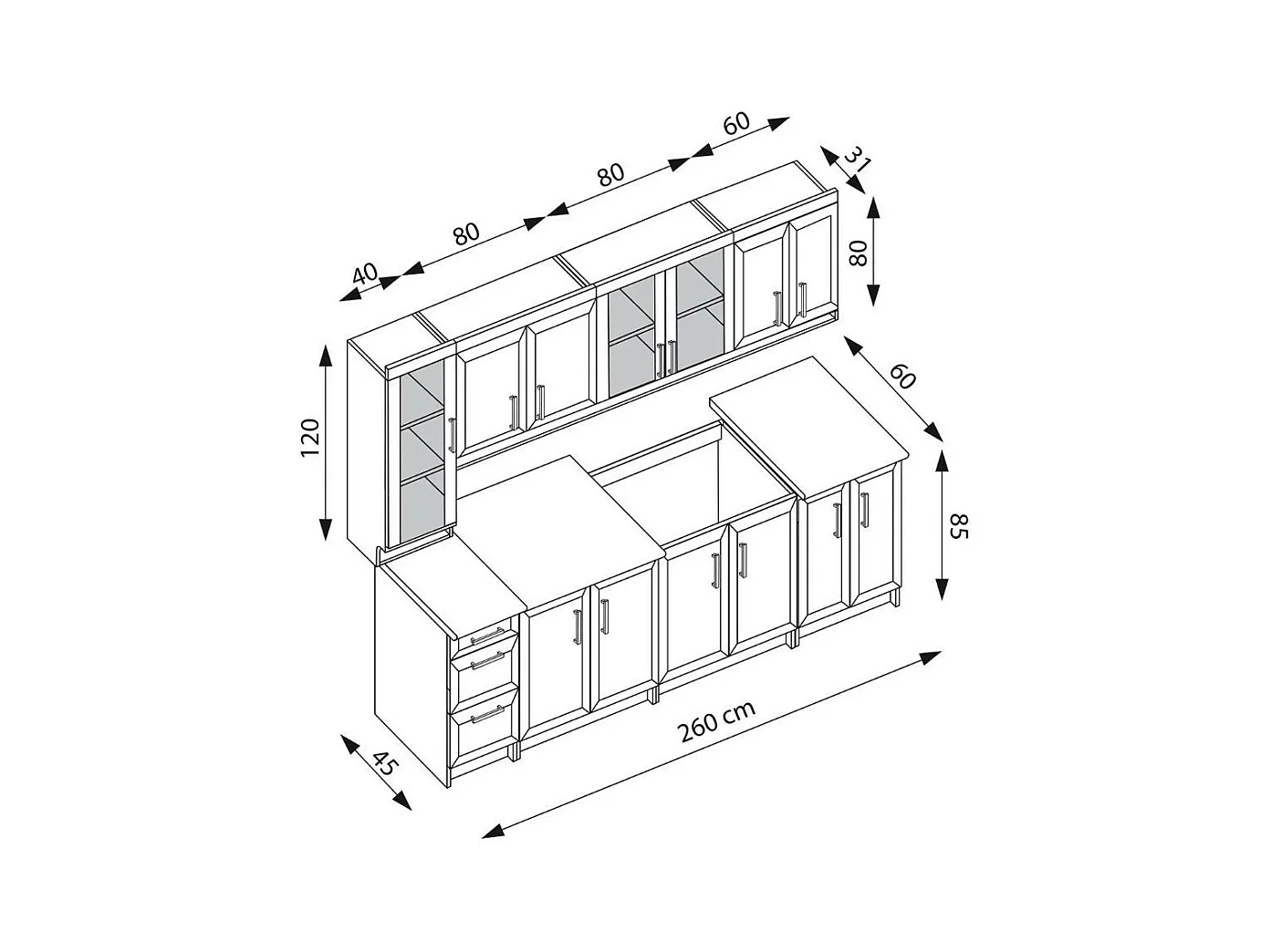 Cucina completa - pensili e basi - noce 260cm Chuck