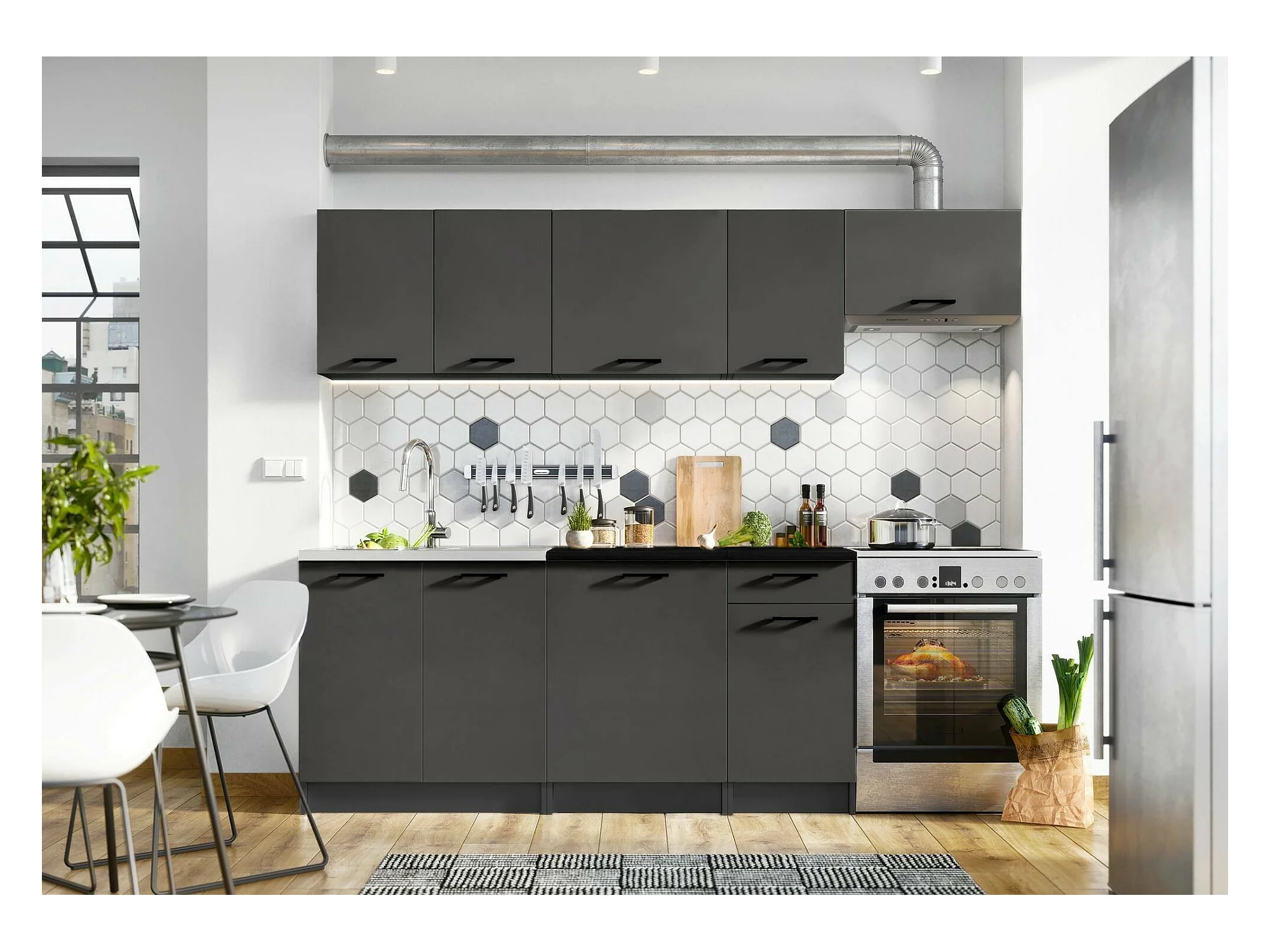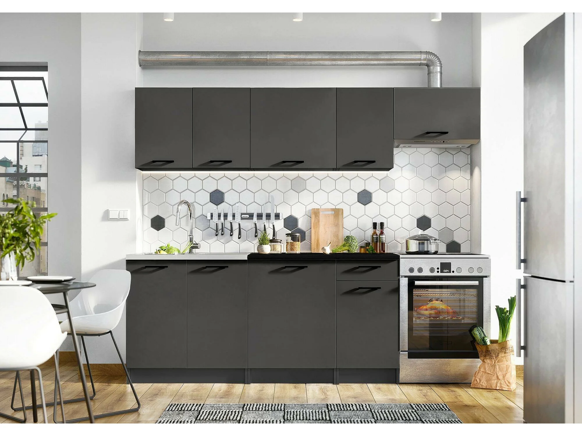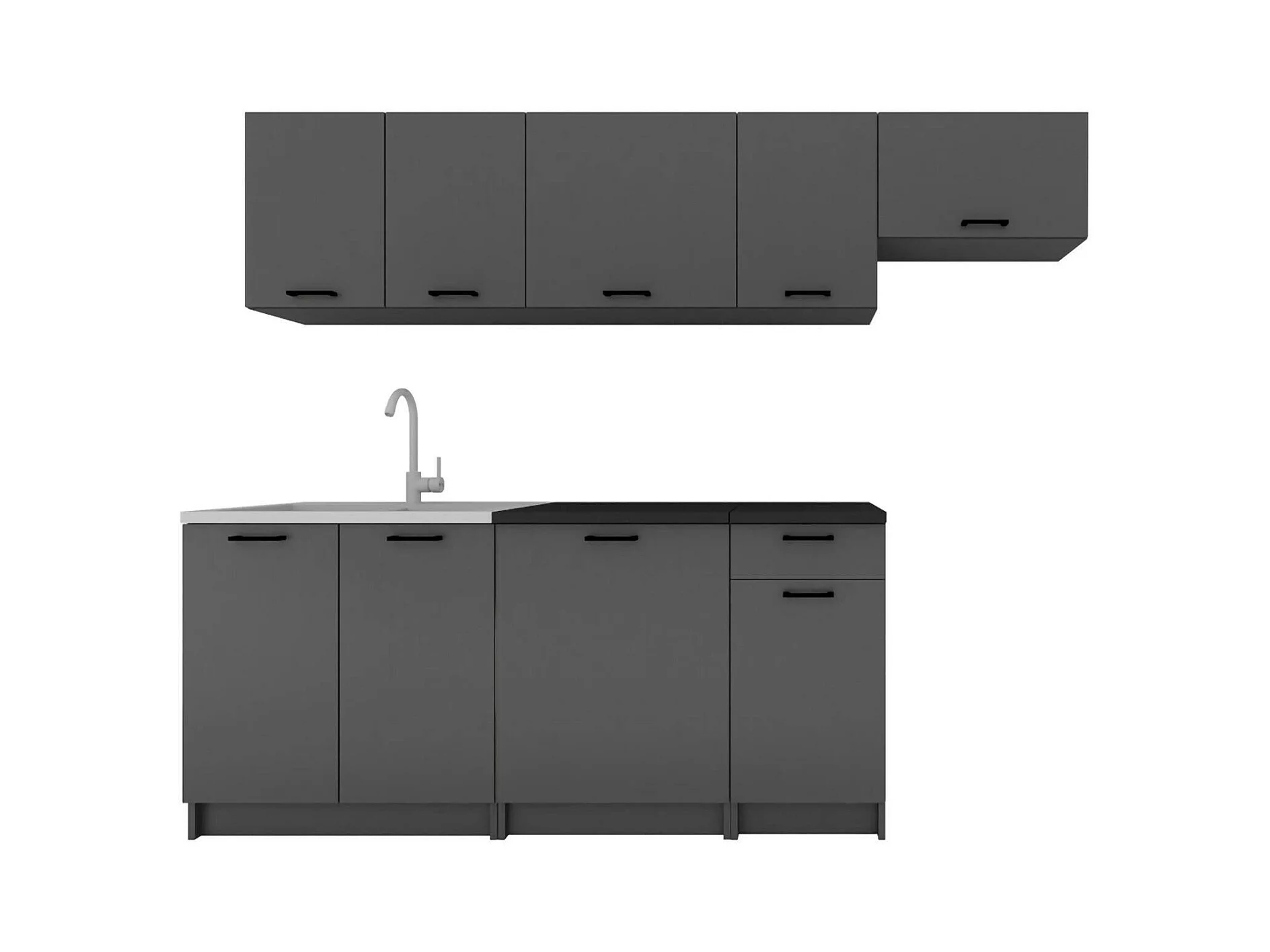 Cucina completa Rosta, Set compatto e funzionale con ante e cassetto, Antracite