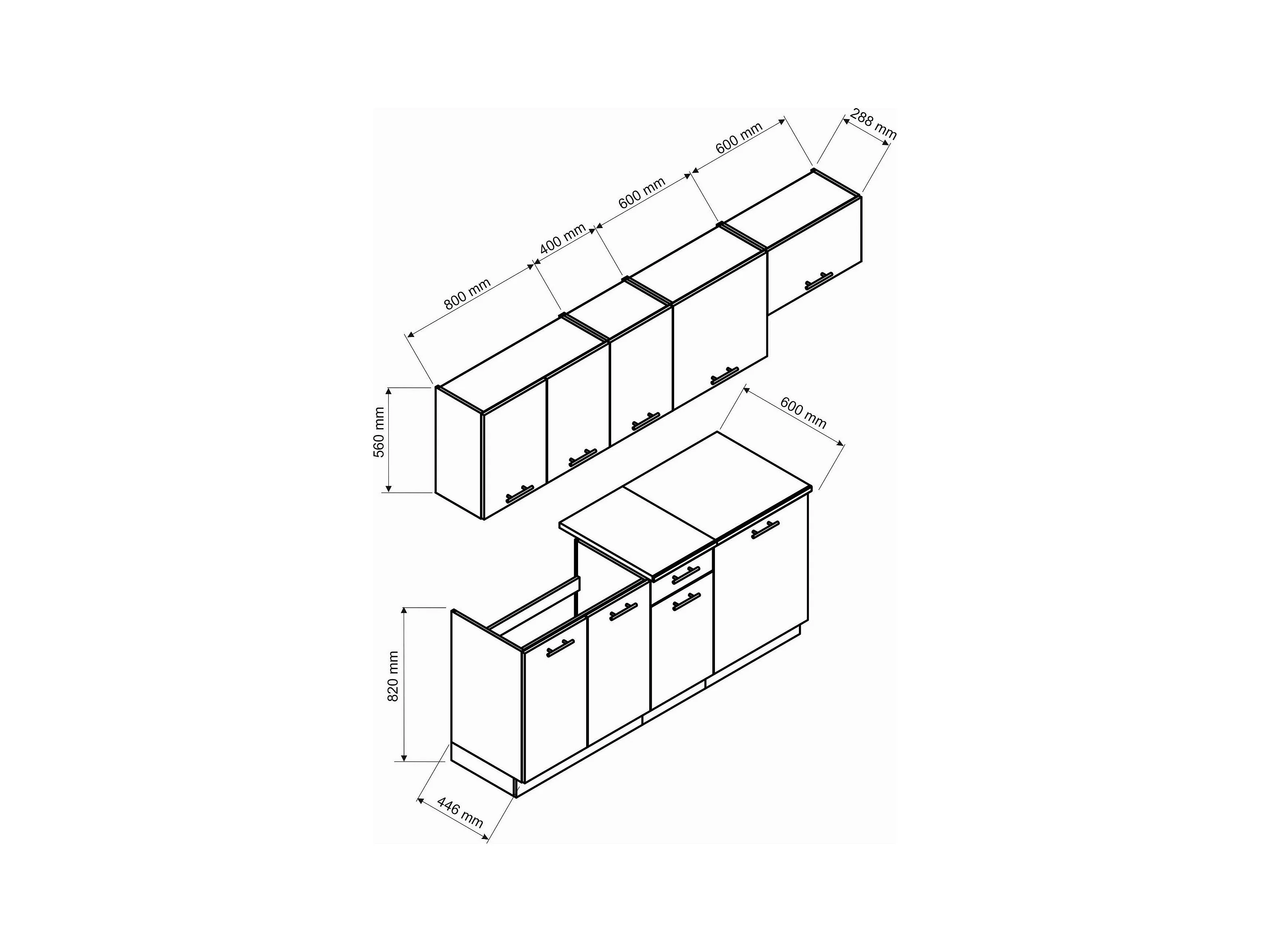 Cucina completa Covo, Set compatto e funzionale con ante e cassetto, Antracite