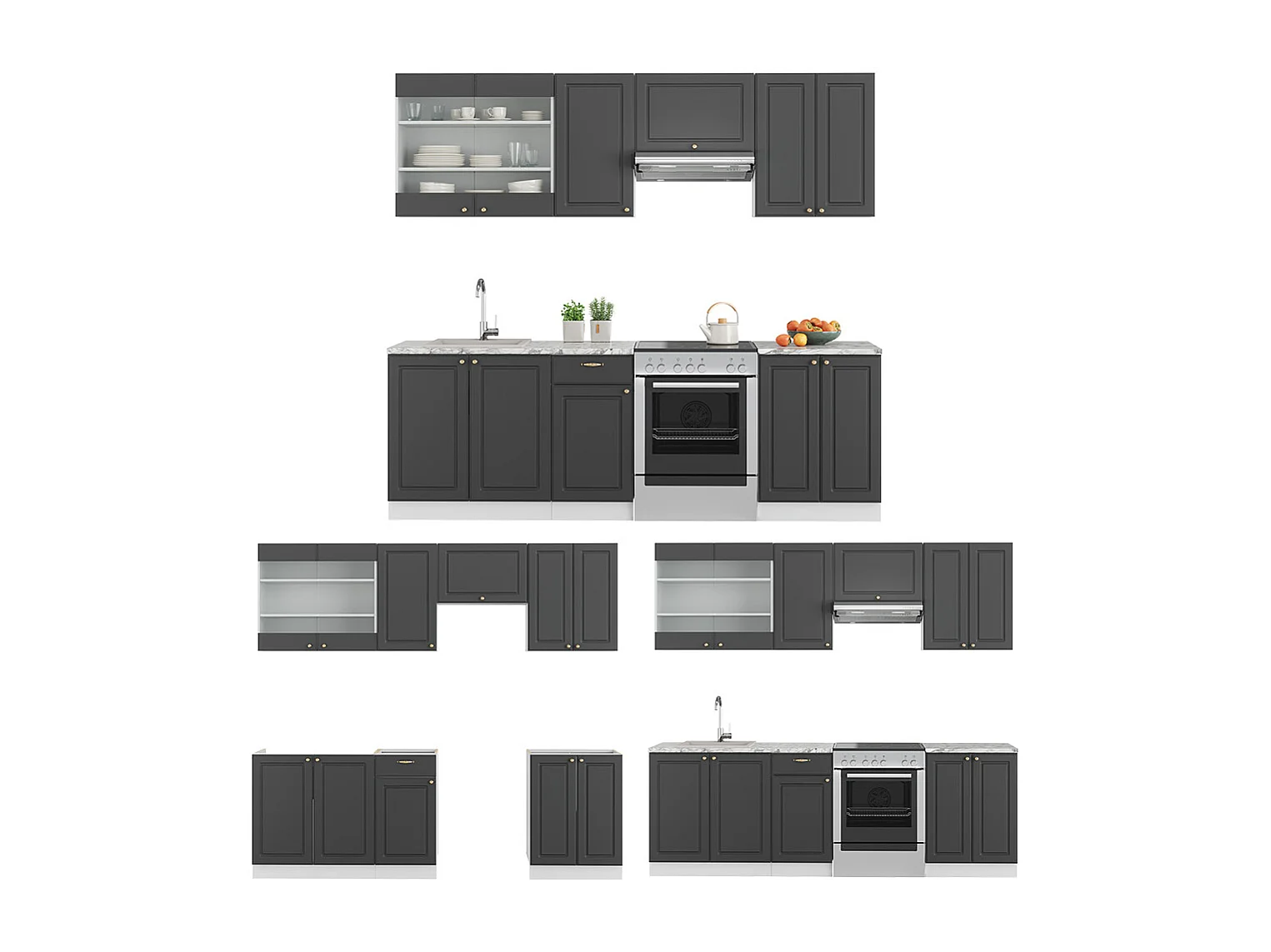 Cucina componibile antracite-oro/bianco 240x60x81.6 fame-line