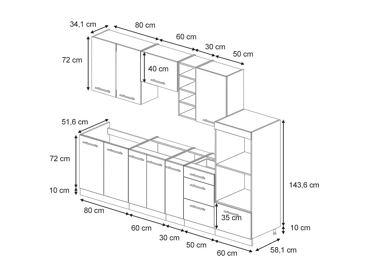 Cucina componibile blu-grigio chiaro/bianco 280x46x81.6 fame-line