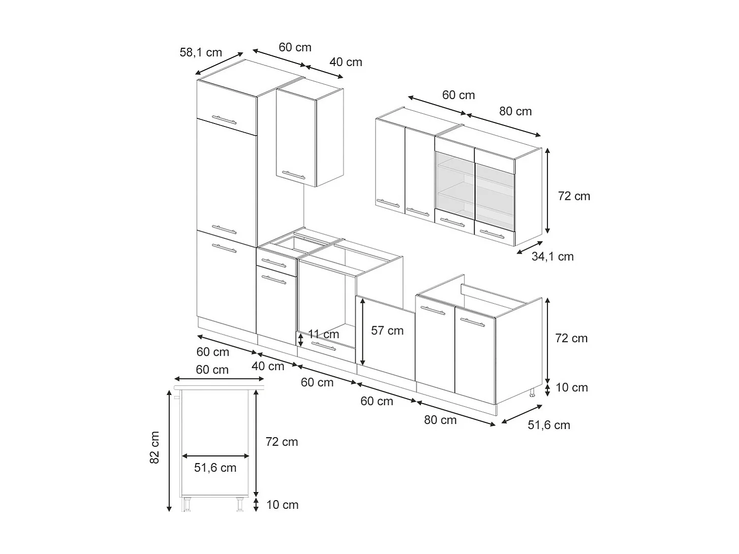 Cucina componibile grigio scuro 300x60x81.6 fame-line