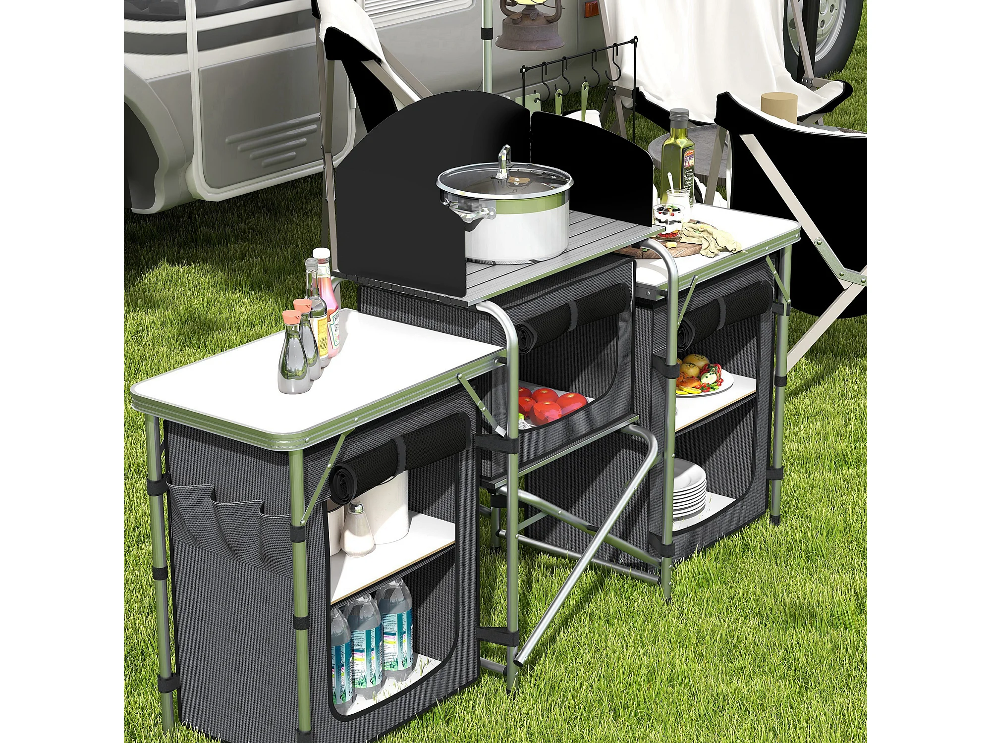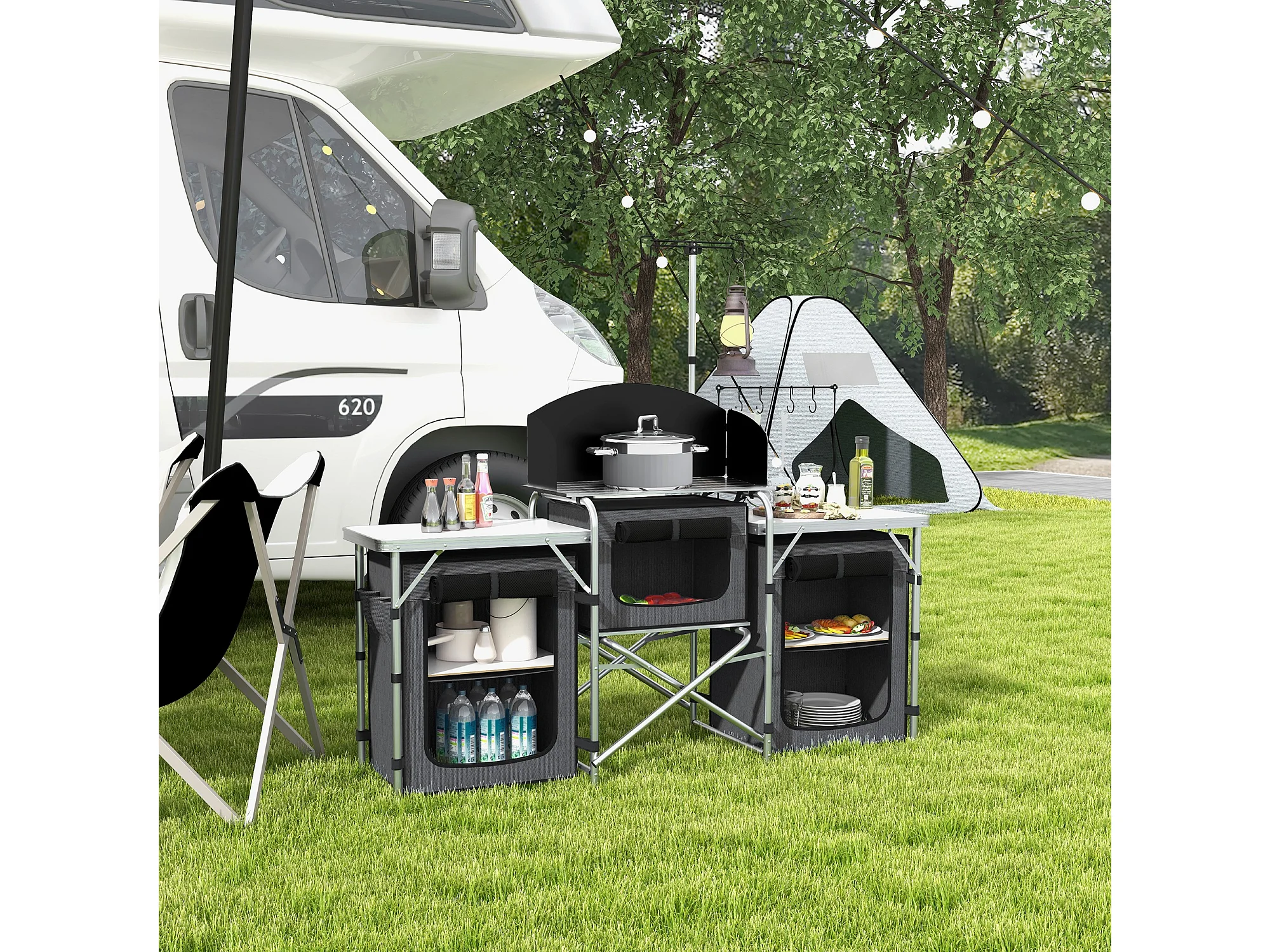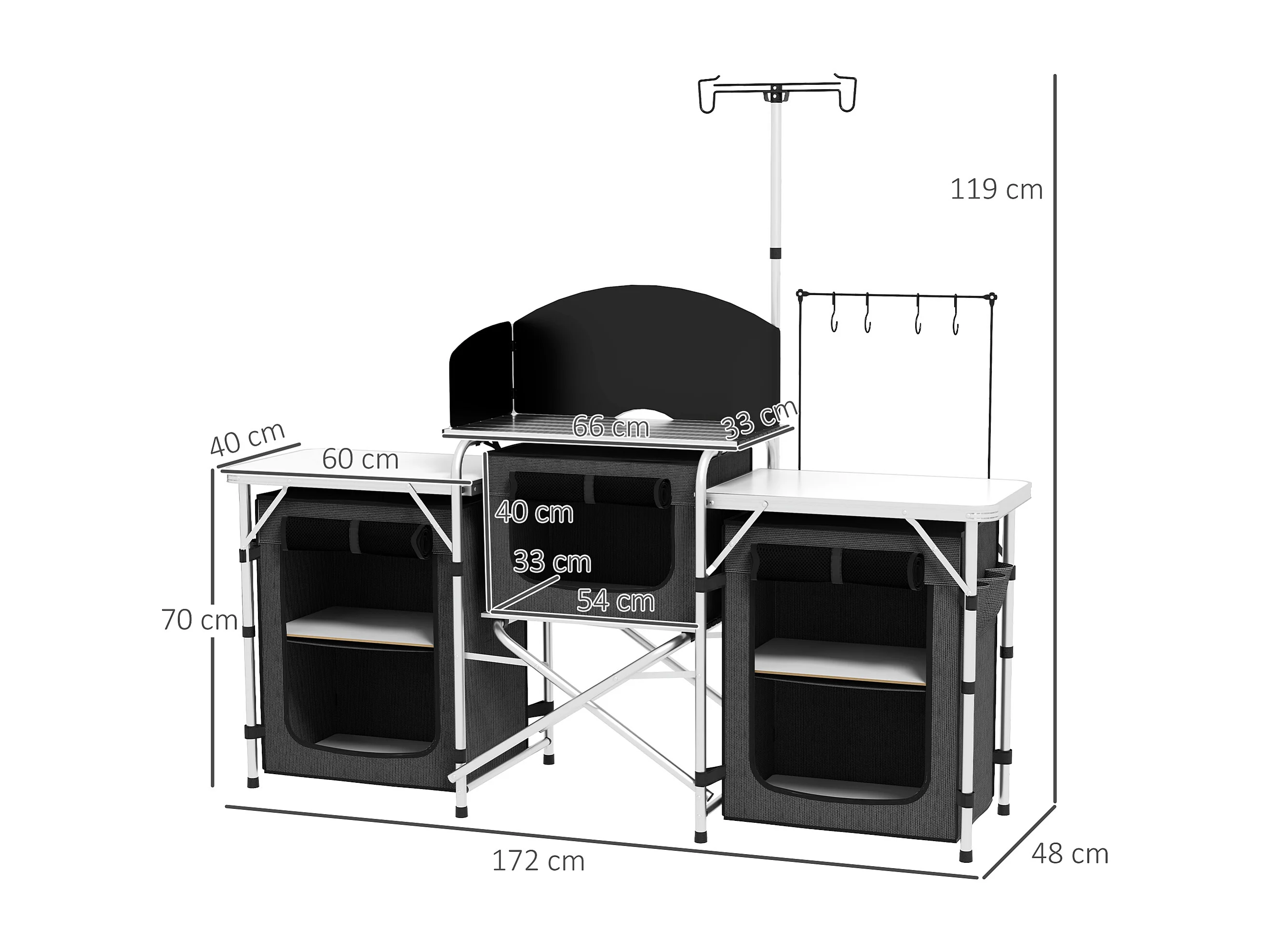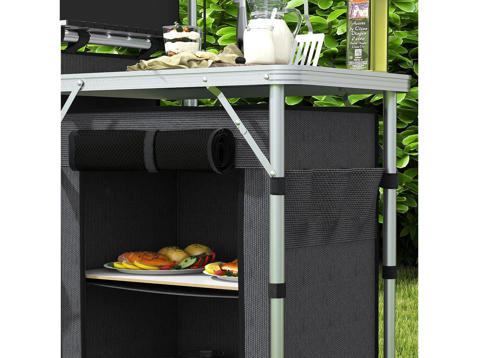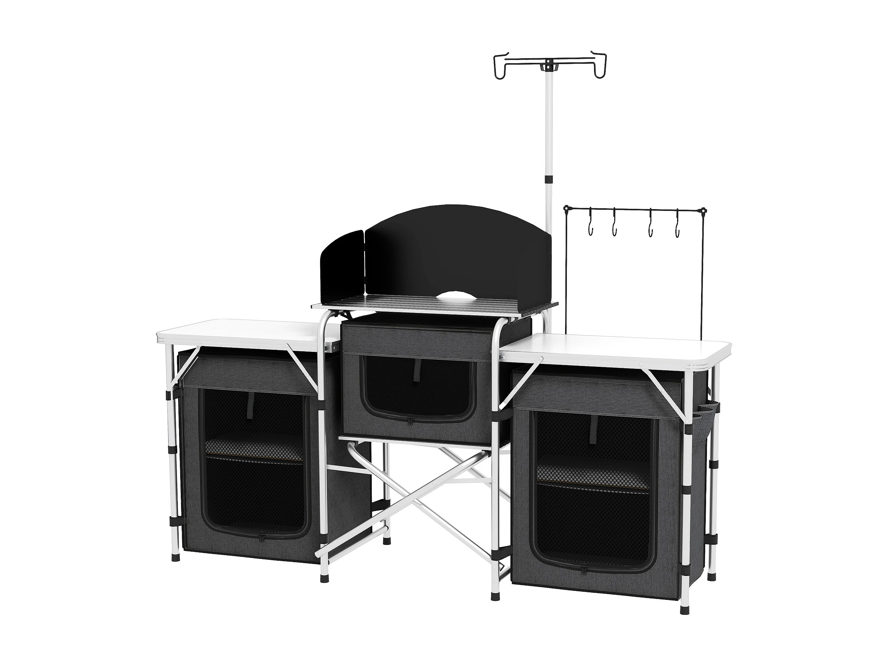 Cucina da campeggio pieghevole a 3 sezioni 5 ripiani e 4 ganci nero