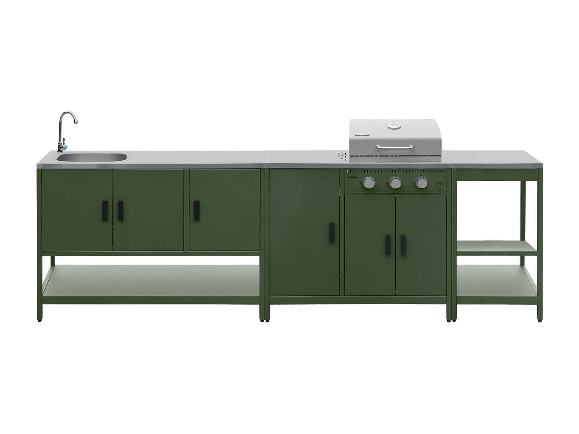 Cucina esterna 5 moduli con barbecue a gas 3 bruciatori, verde