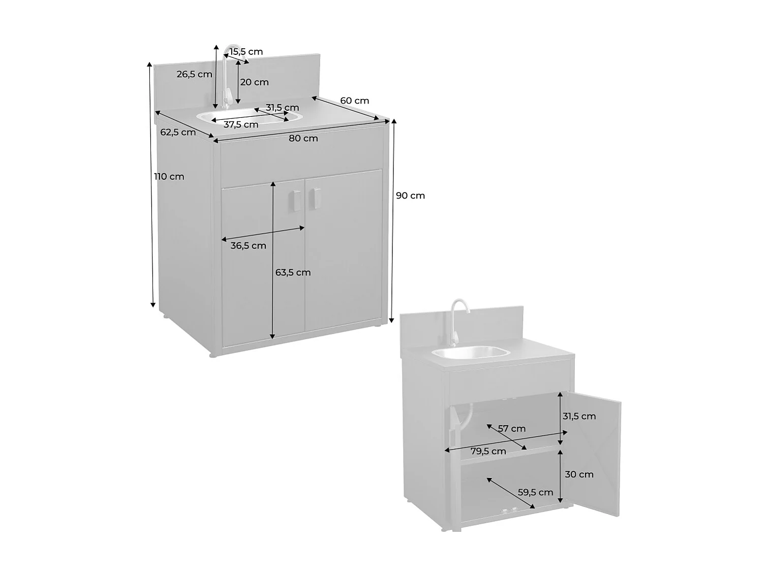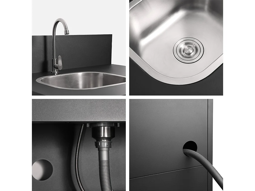 Cucina da esterno in acciaio con lavello e 2 ante, 80cm, nero