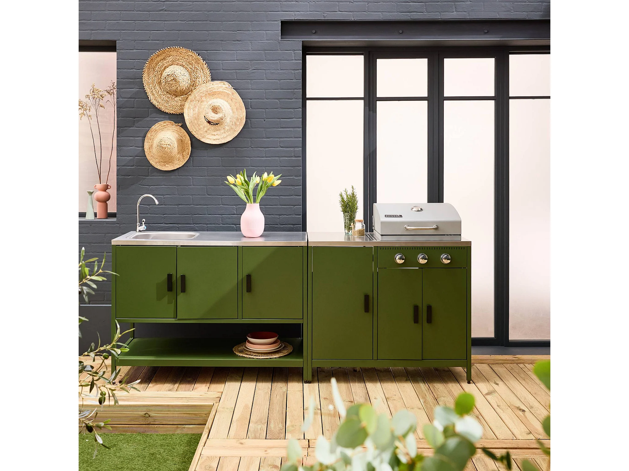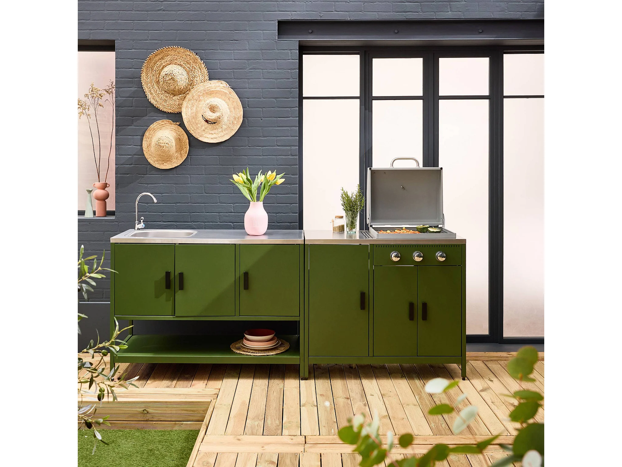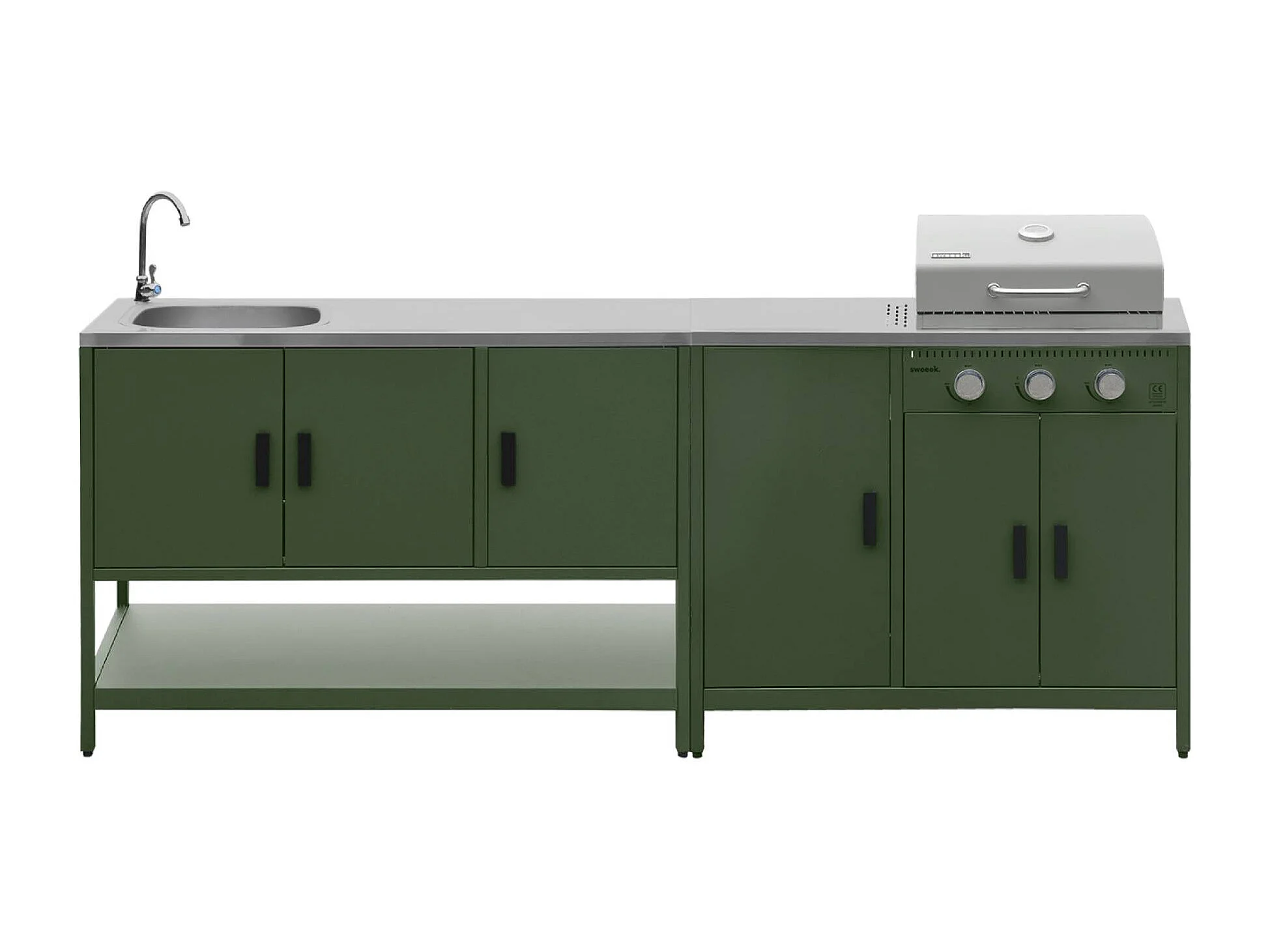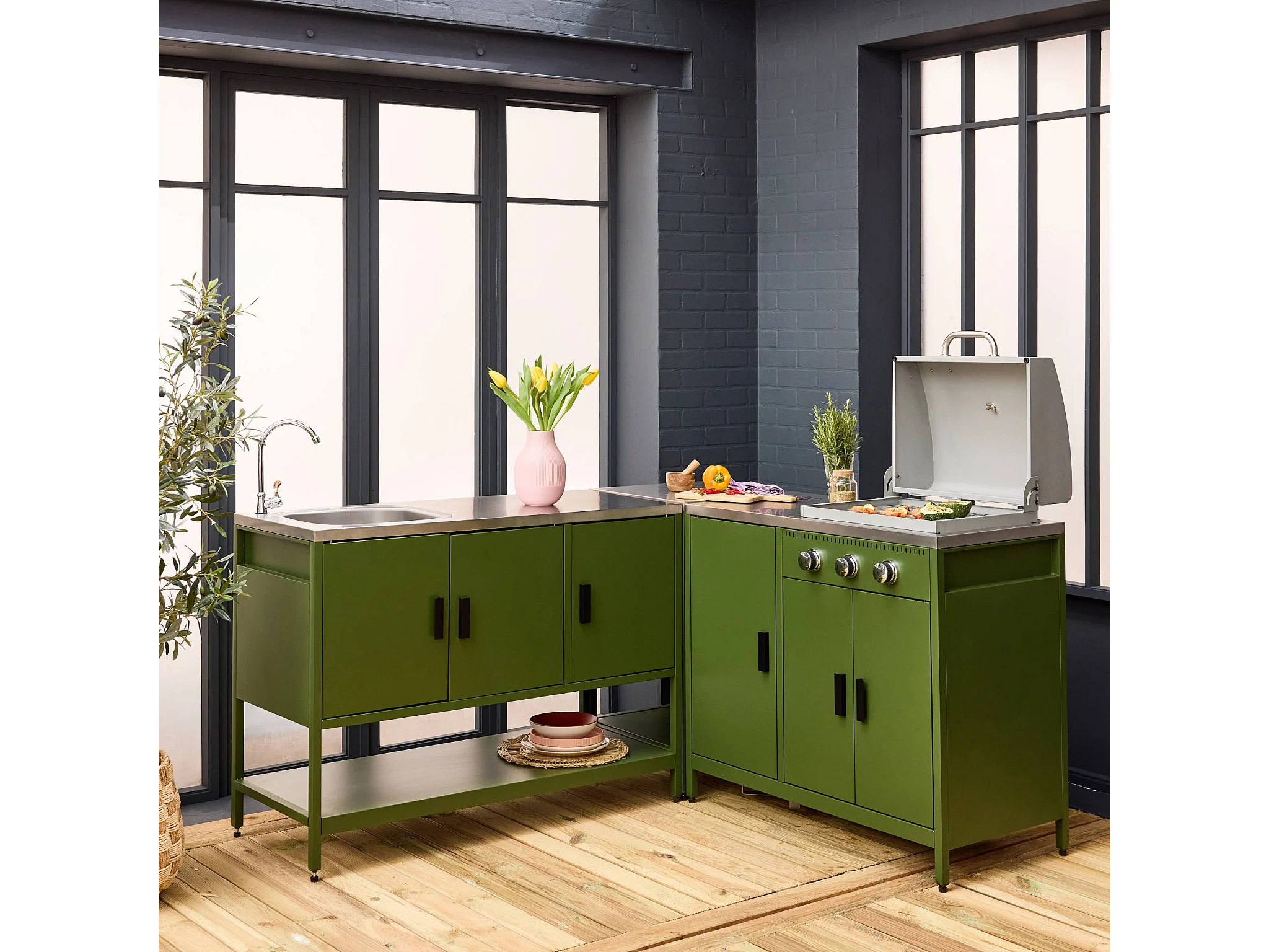 Cucina esterna 5 moduli con barbecue a gas 3 bruciatori, verde
