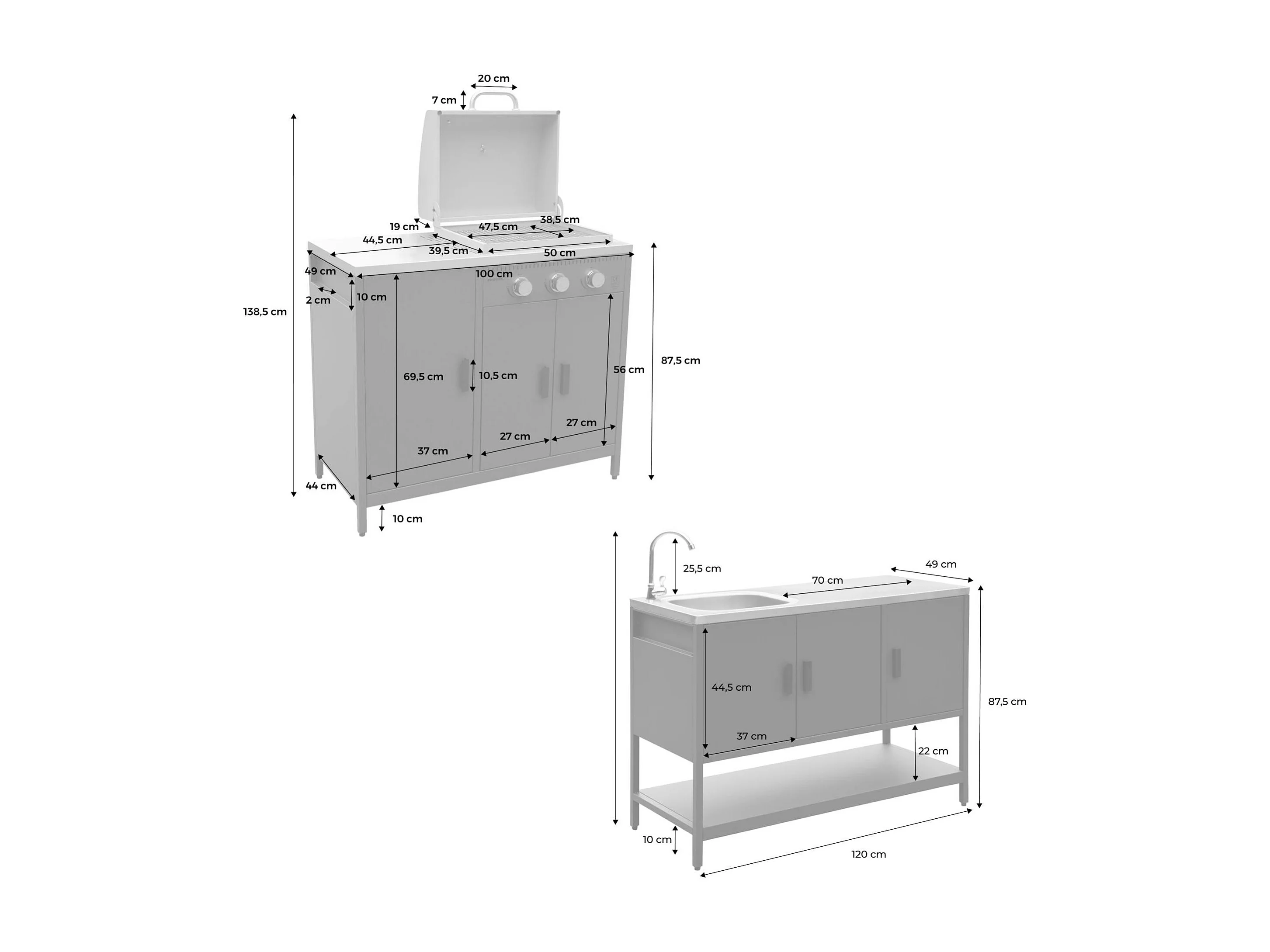 Cucina da esterno 3 moduli con barbecue a gas 3 bruciatori su piedi,