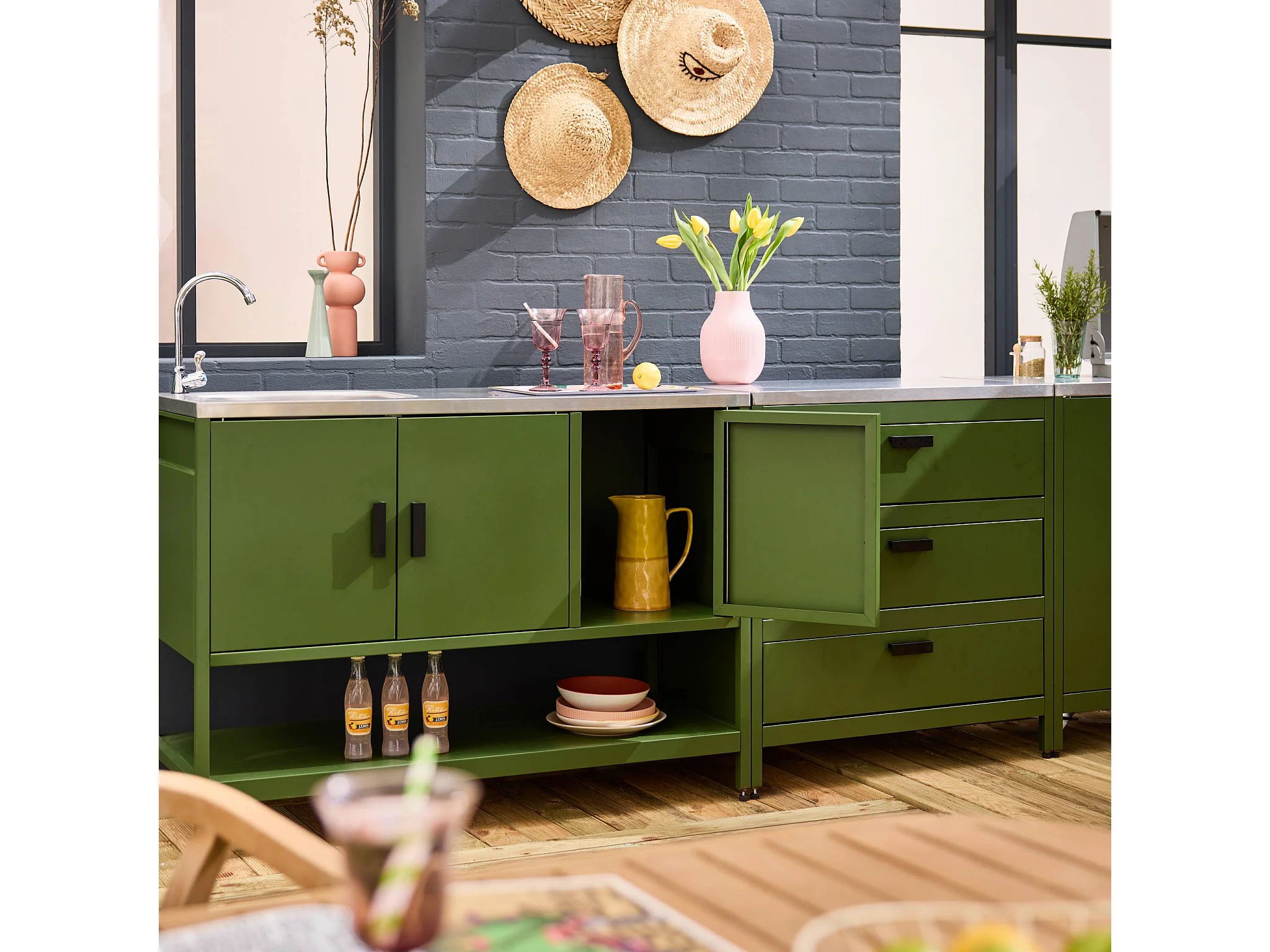 Mobile da esterno, 3 moduli in acciaio inox, verde