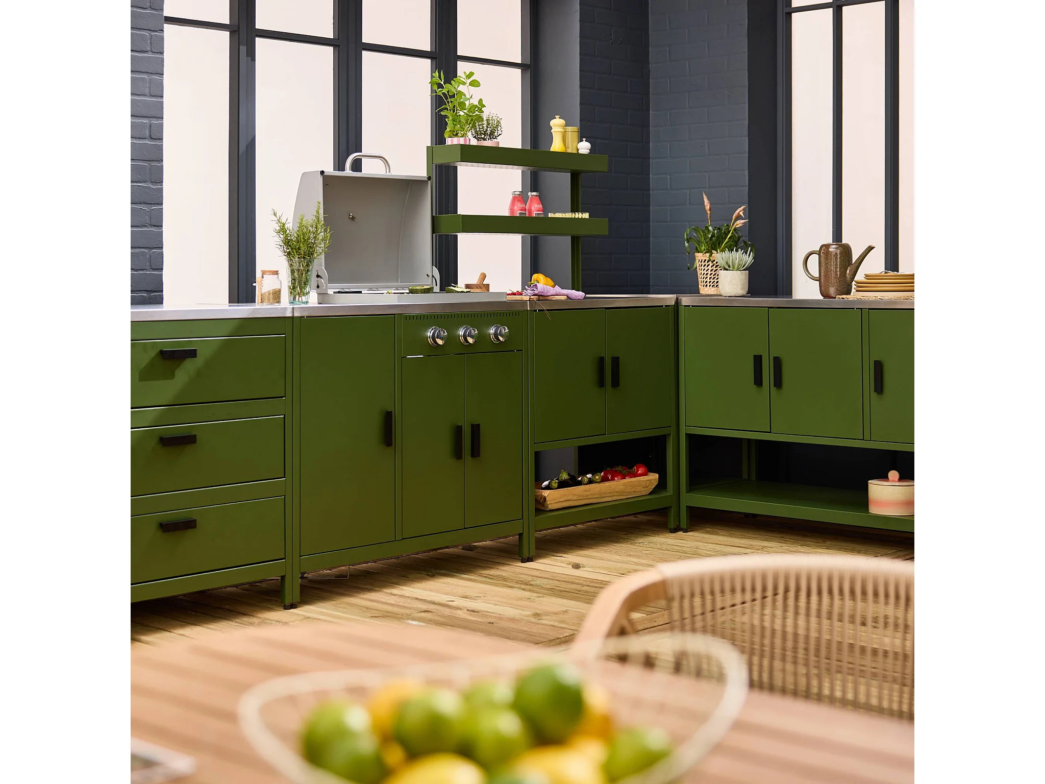 Cucina esterna 5 moduli con barbecue a gas 3 bruciatori, verde