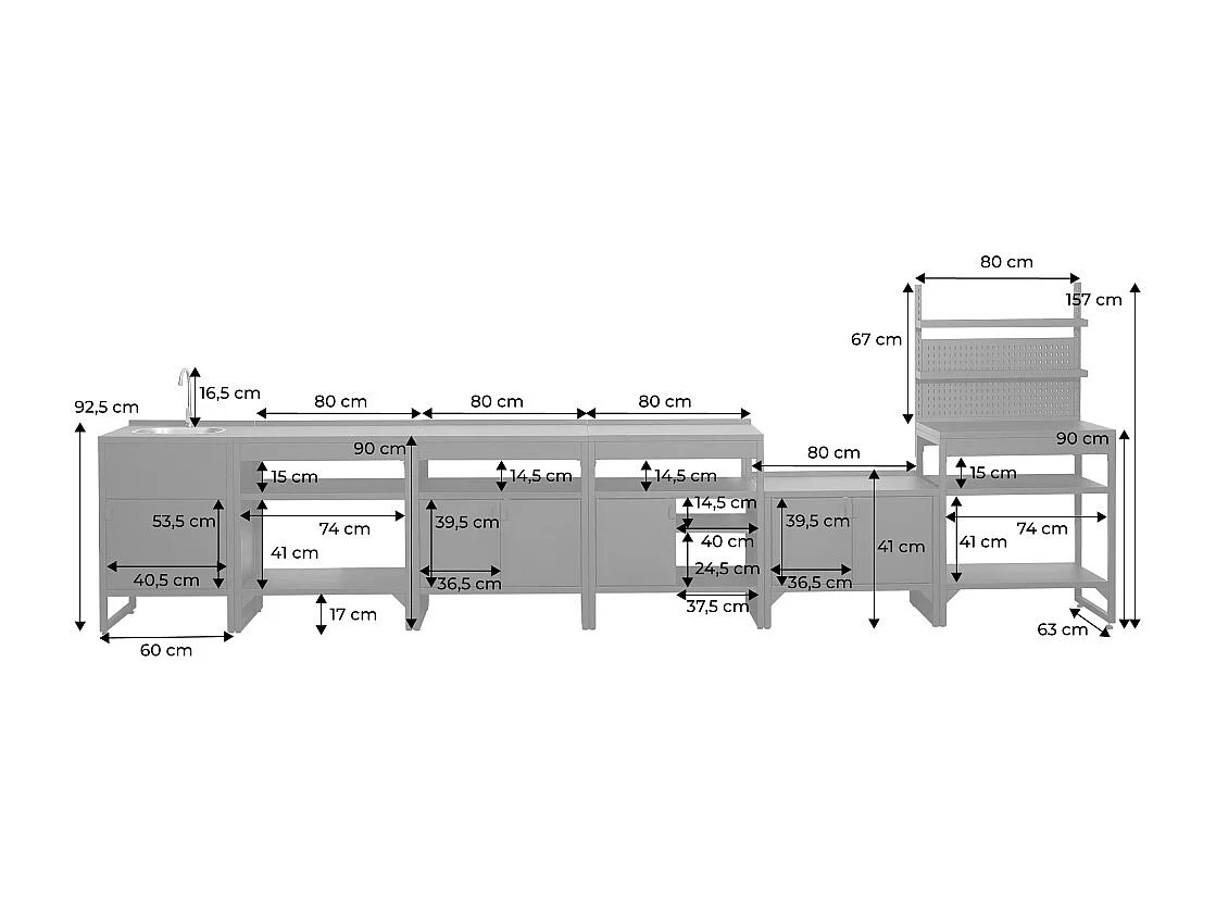 Cucina esterna 6 moduli acciaio inossidabile, nero