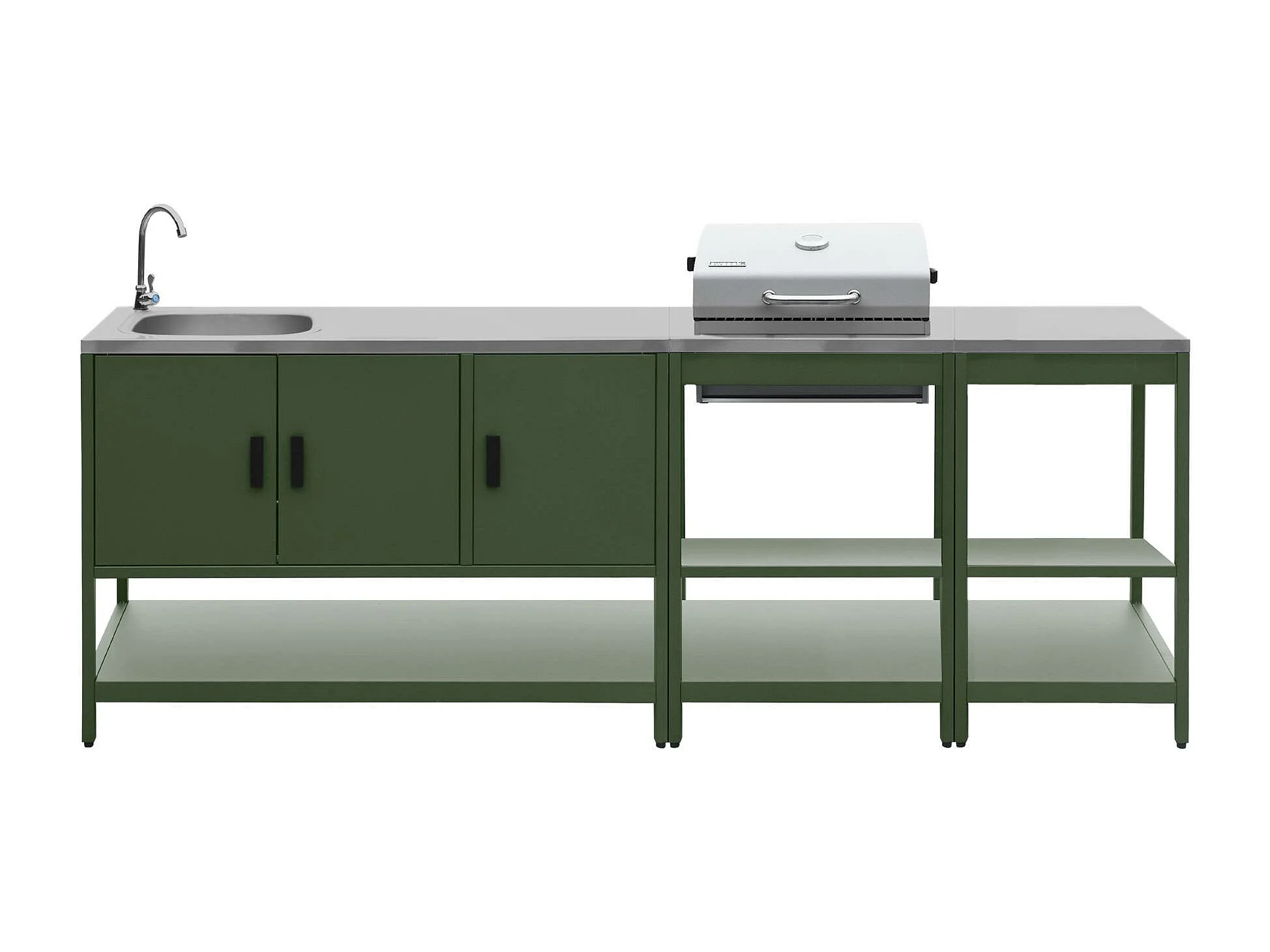 Mobile da esterno, 3 moduli in acciaio inox, verde