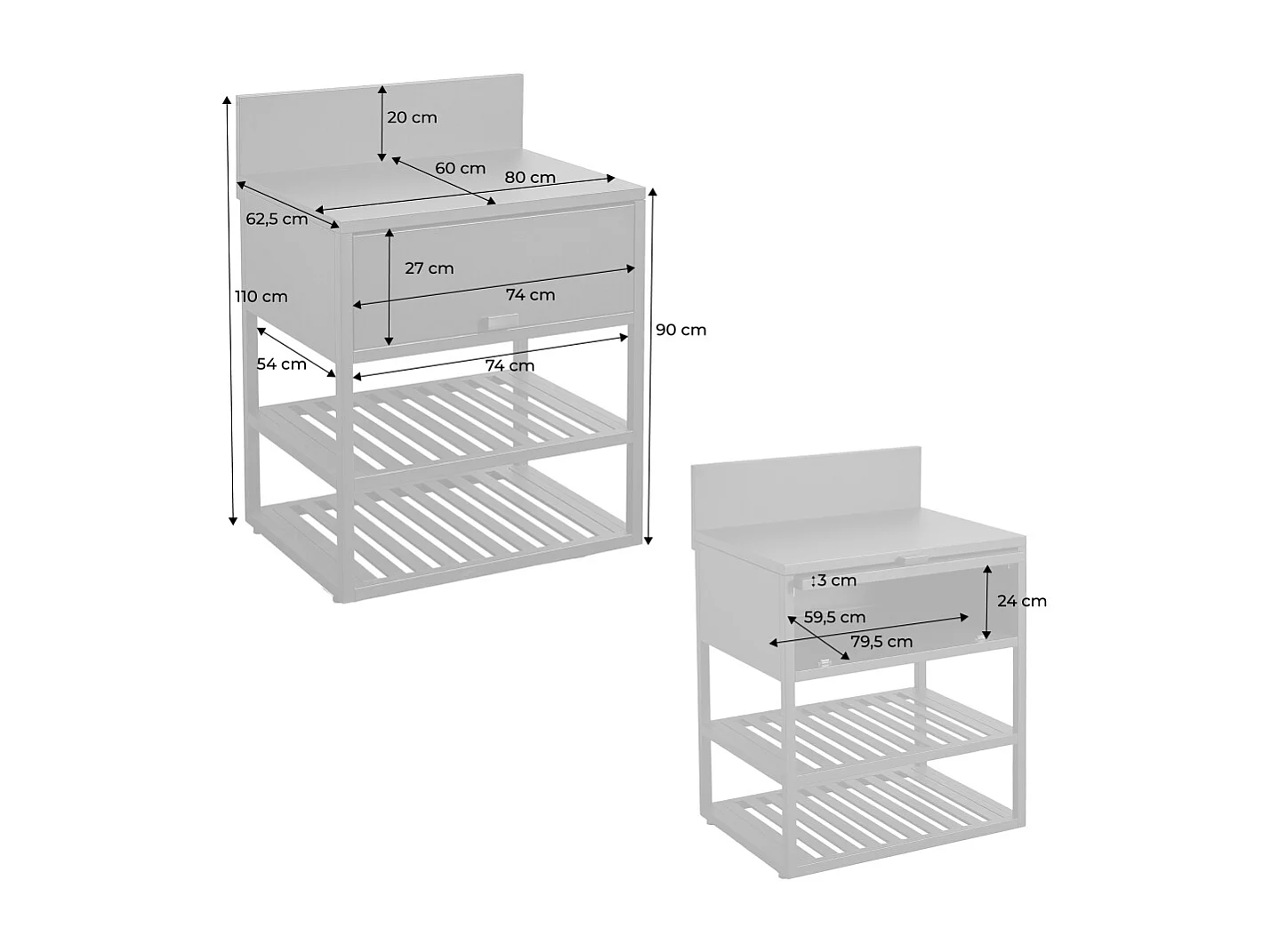 Cucina esterna in acciaio con 1 anta e 2 ripiani, 80cm, nero