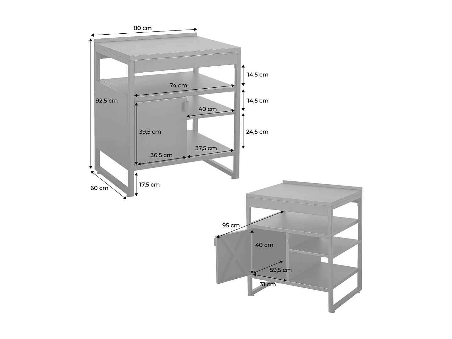 Cucina esterna in acciaio con 1 anta e 3 ripiani, 80cm, nero