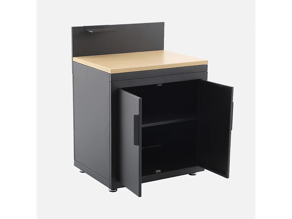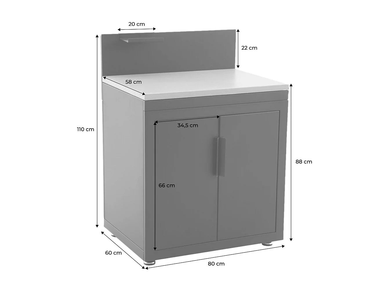 Cucina esterna in acciaio e decorazione in legno 2 porte 1 gancio,