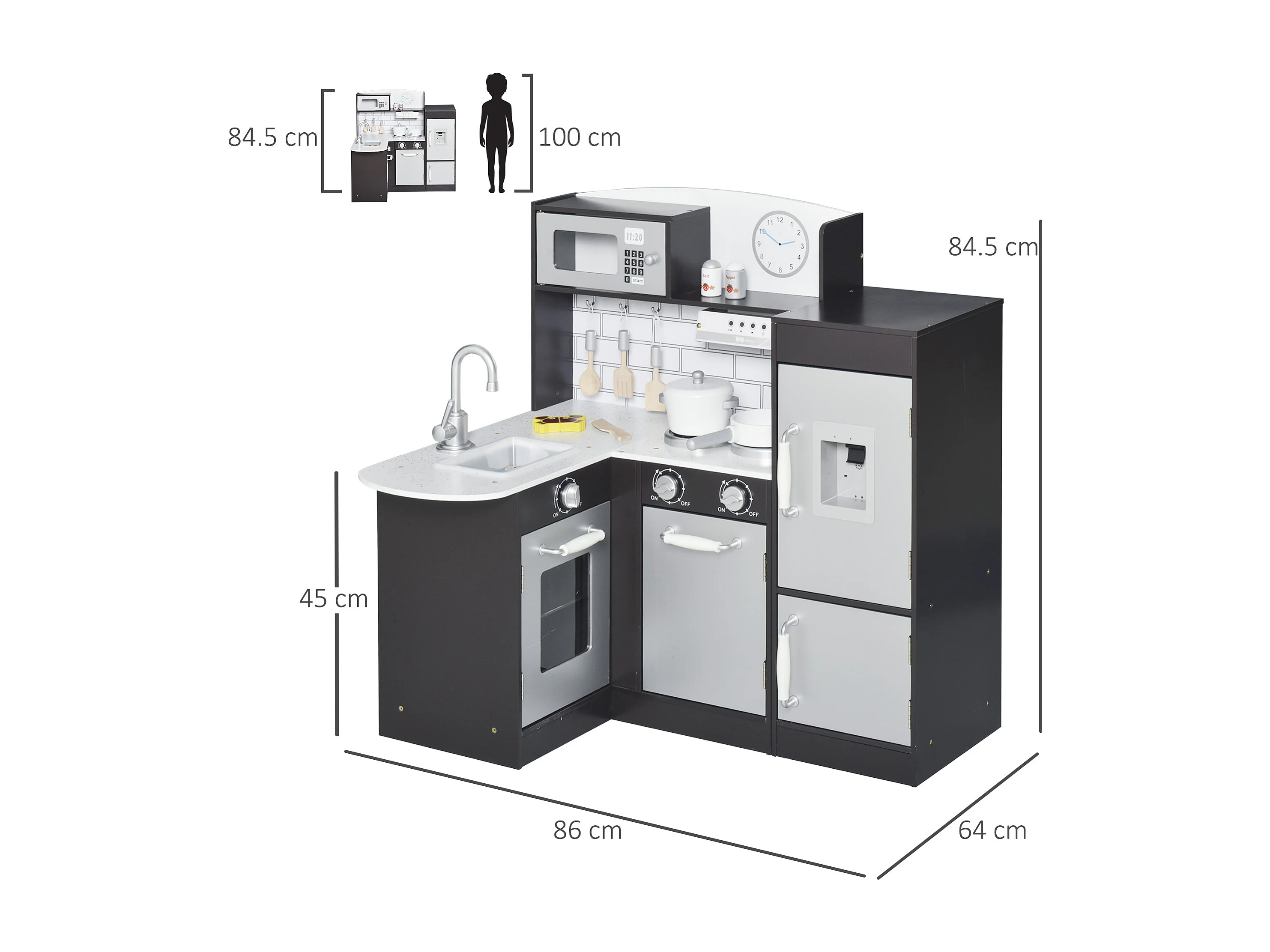 Cucina giocattolo per bambini 3-6 anni con accessori in legno bianco