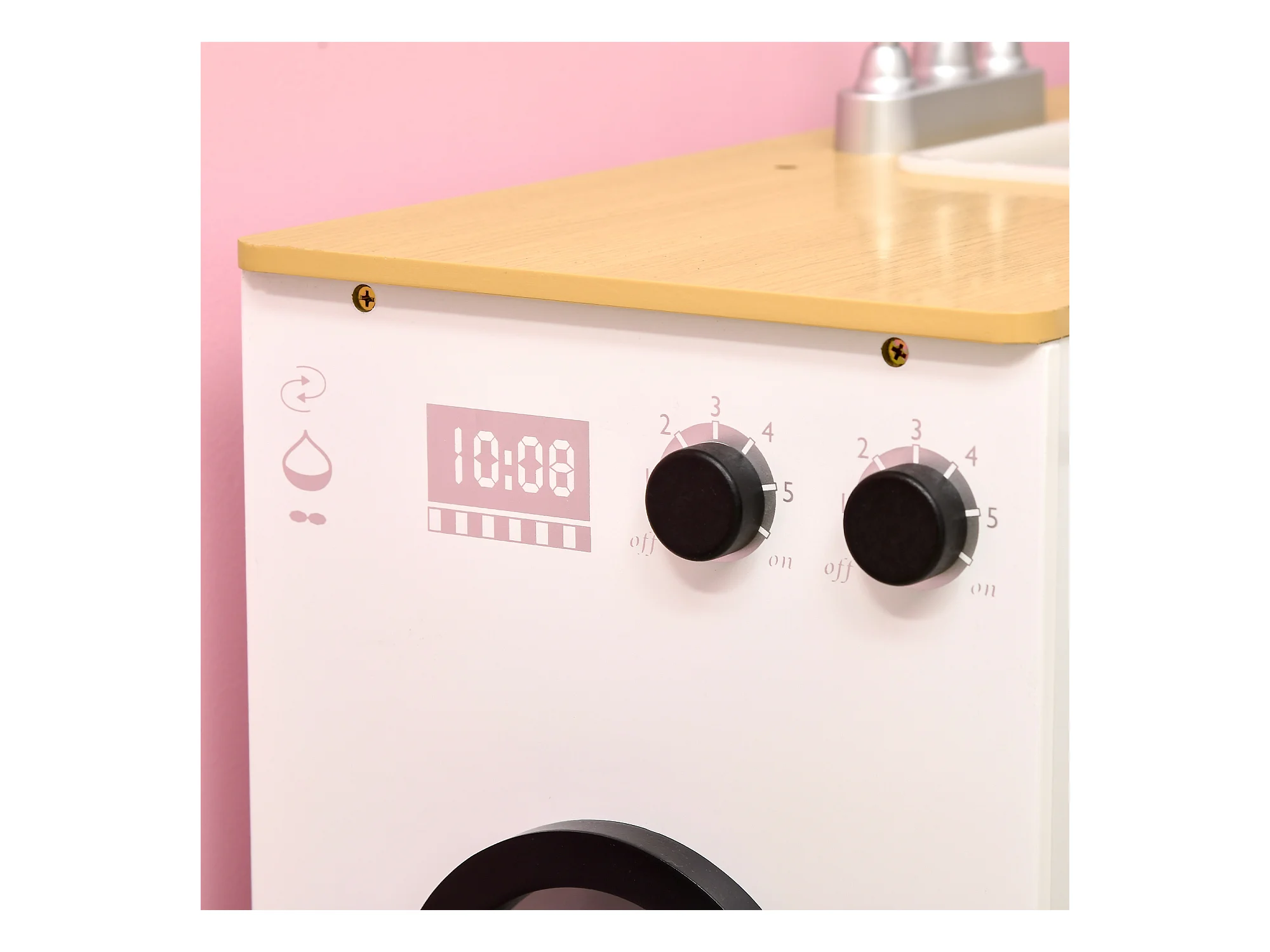 Set di Cucina SucceBuy per Bambini, Cucina di Gioco in Legno con Luci e Suoni, Gioco di Cucina con 24 Pezzi, Bianco