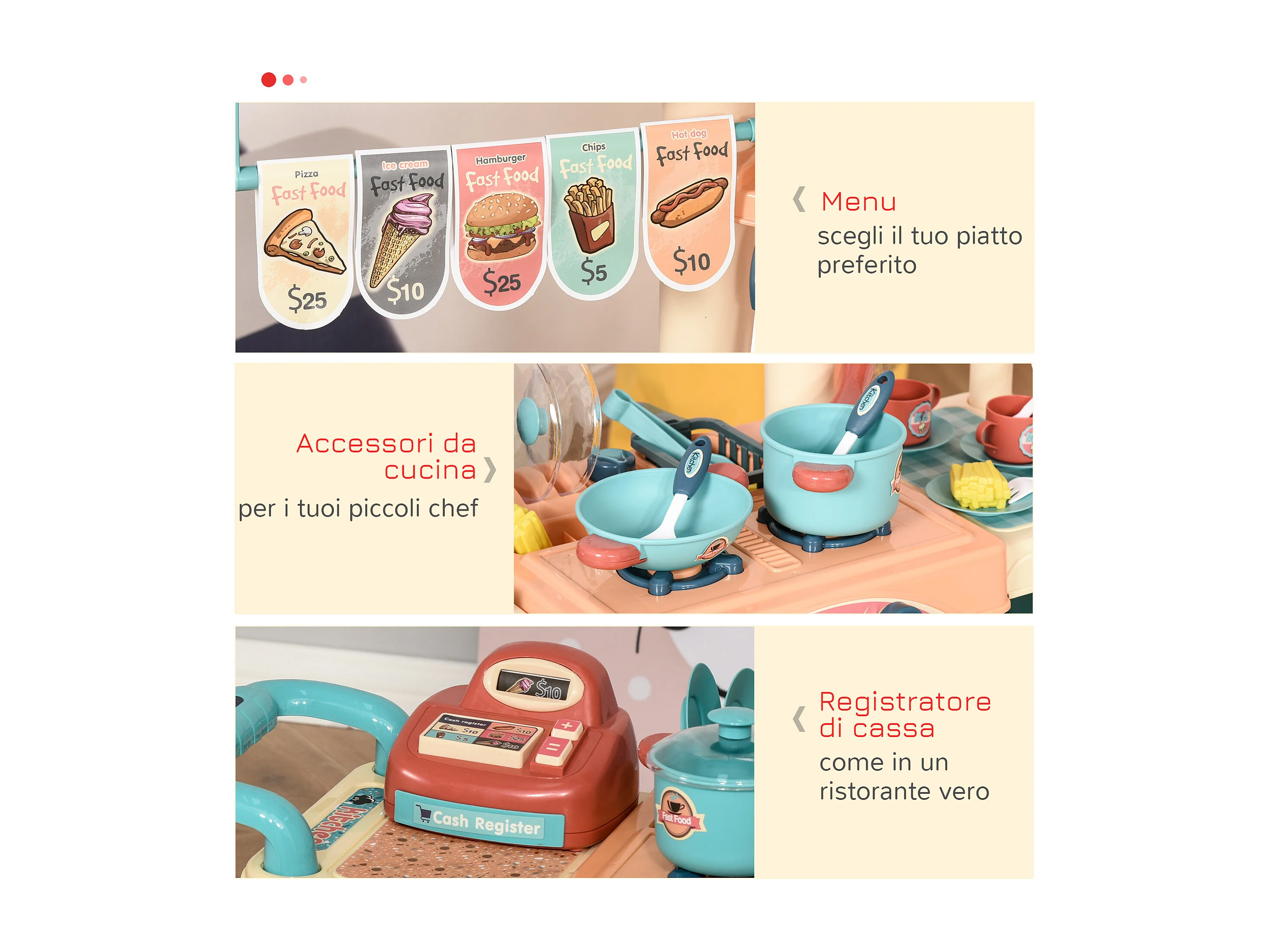 Cucina giocattolo per bambini 3-6 anni con 50 accessori inclusi