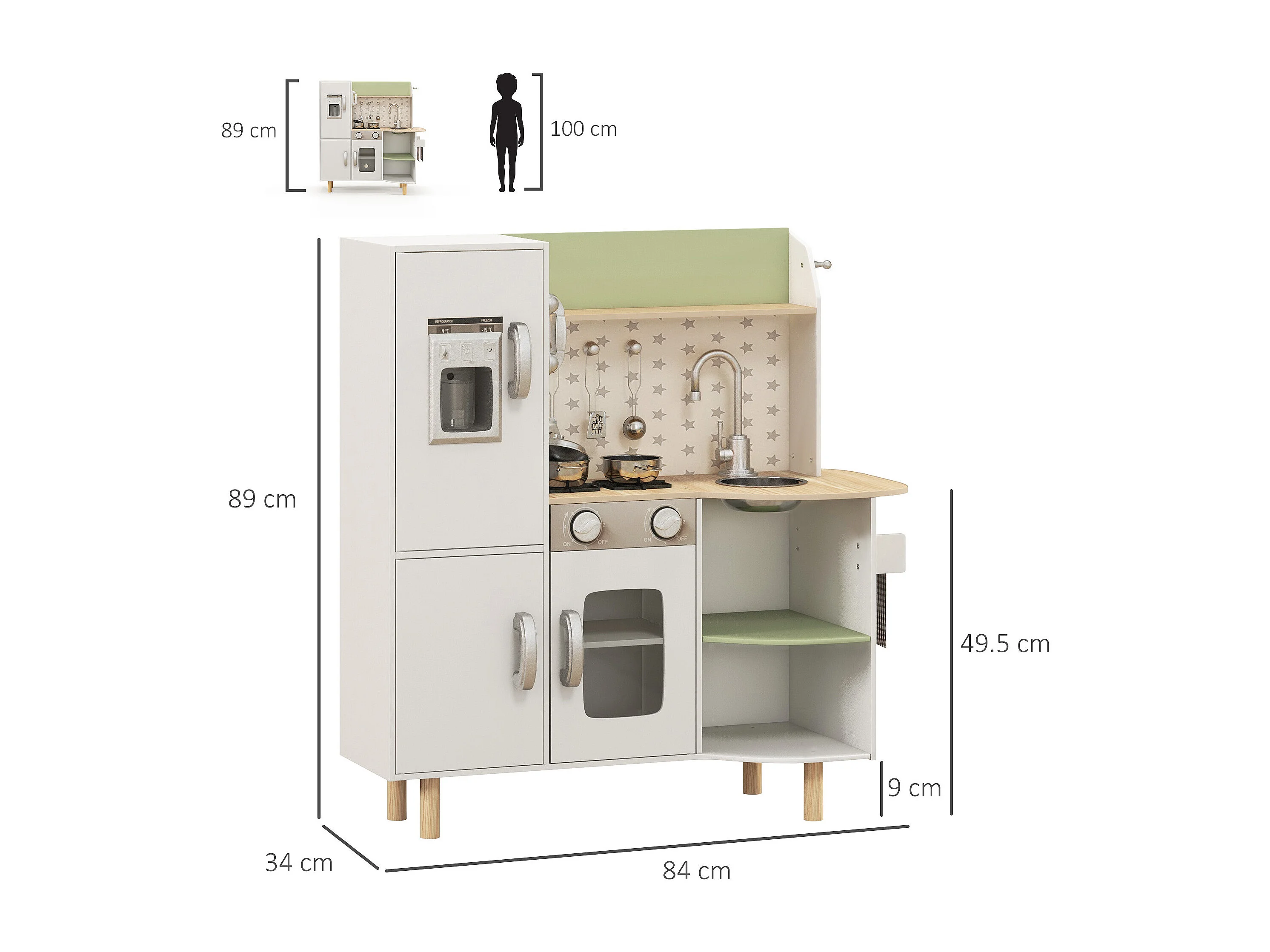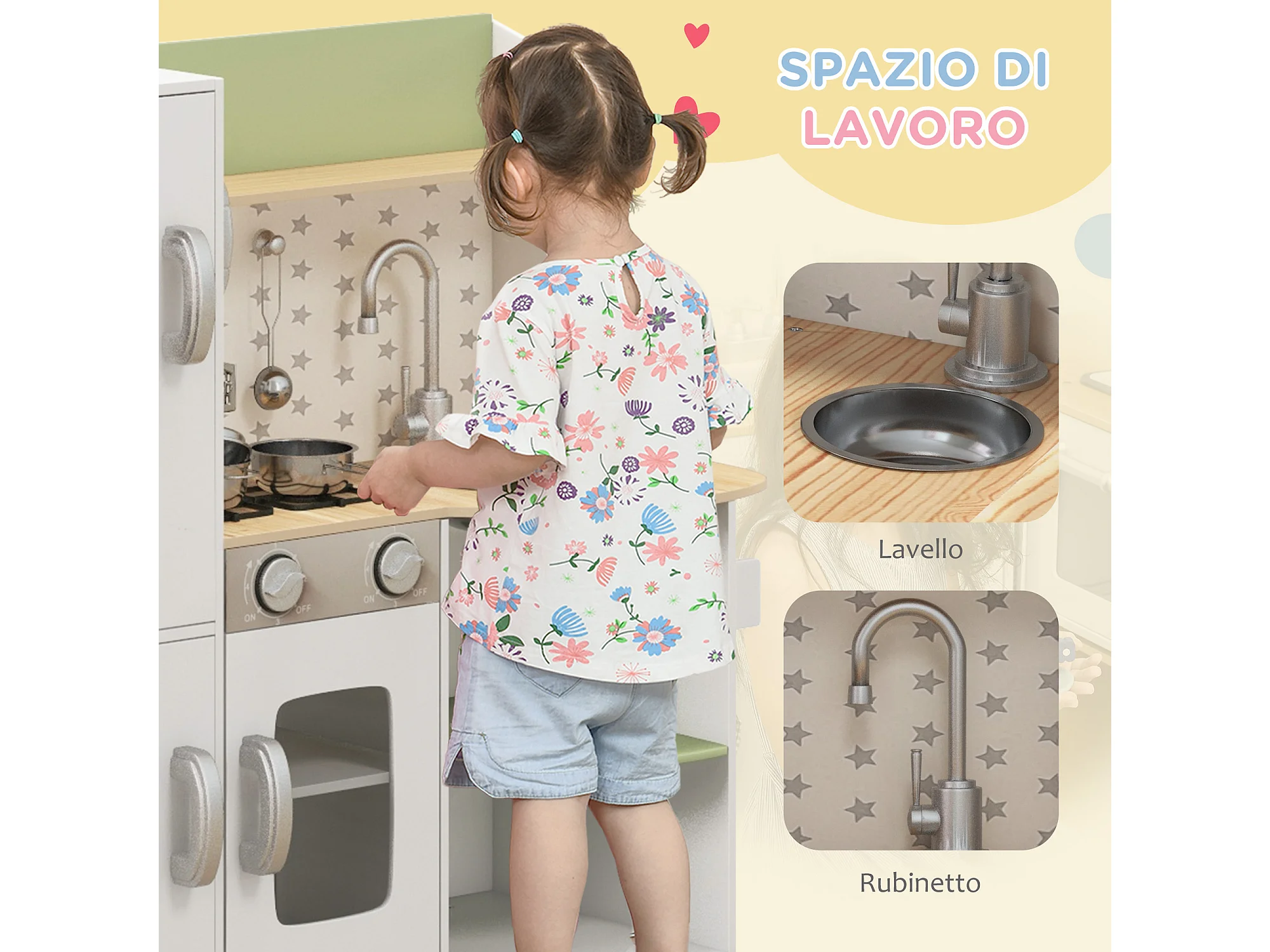 Cucina giocattolo in legno per bambini 3-6 anni design 2 pezzi