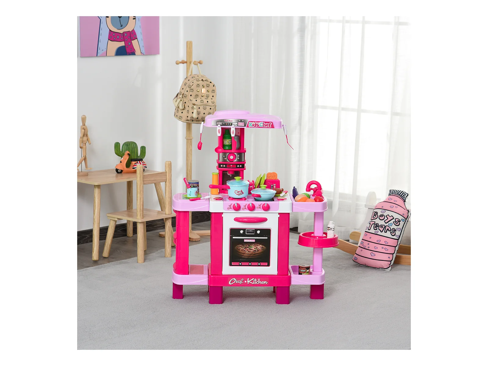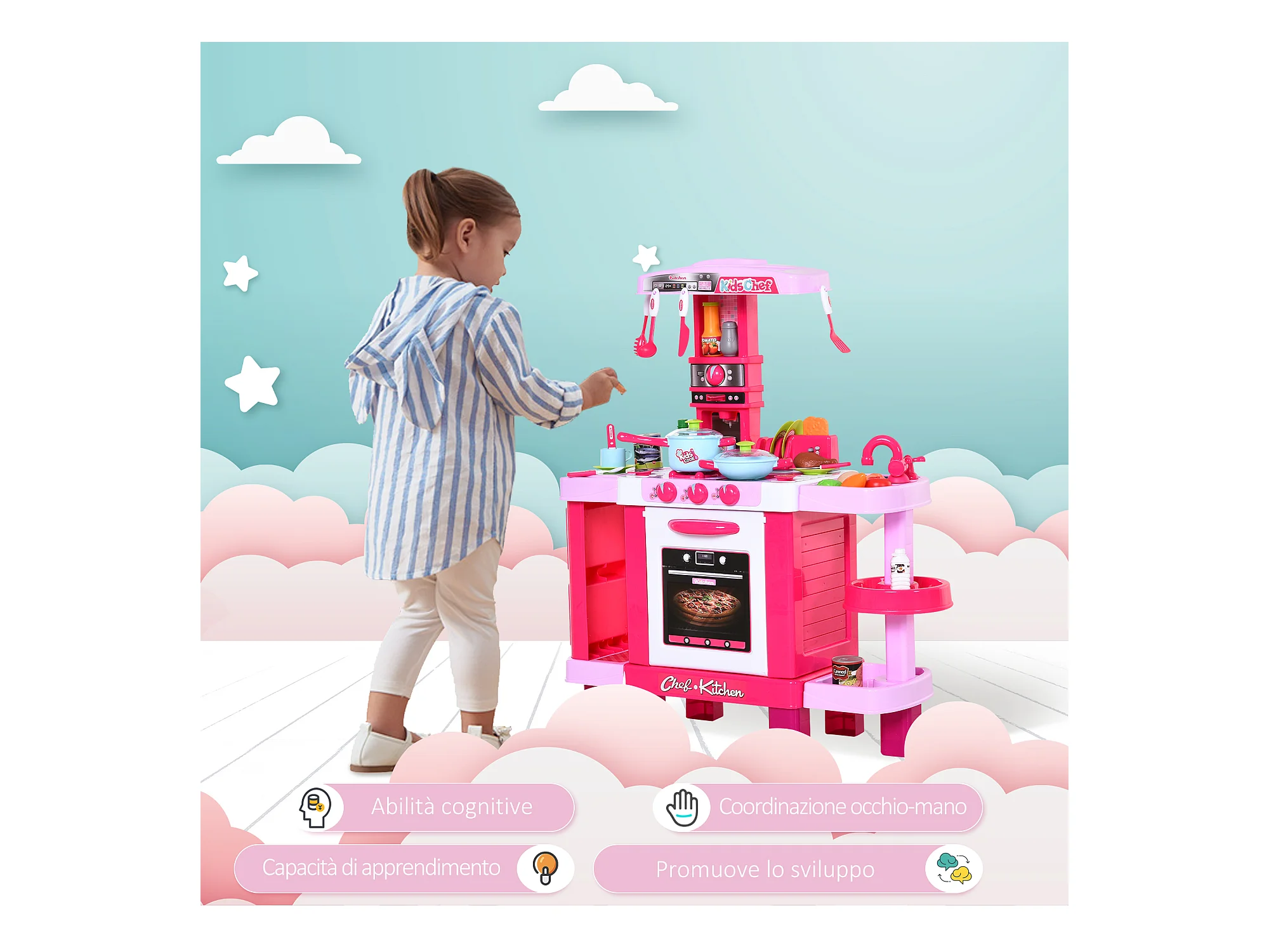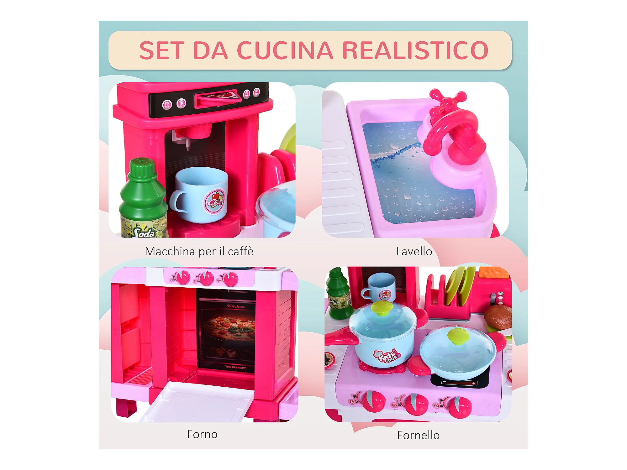 Cucina giocattolo per bambini con 38 accessori e suoni realistici rosa