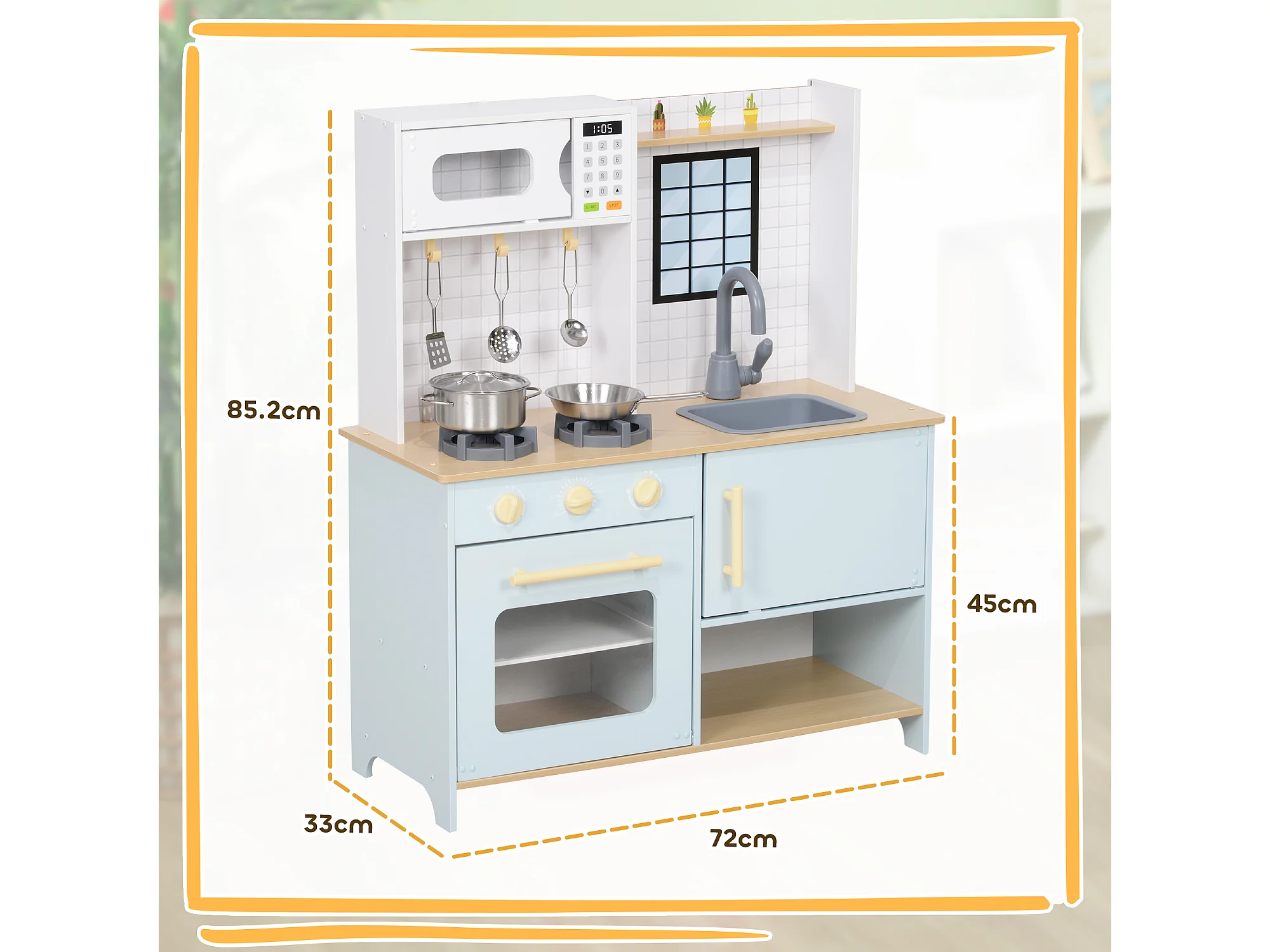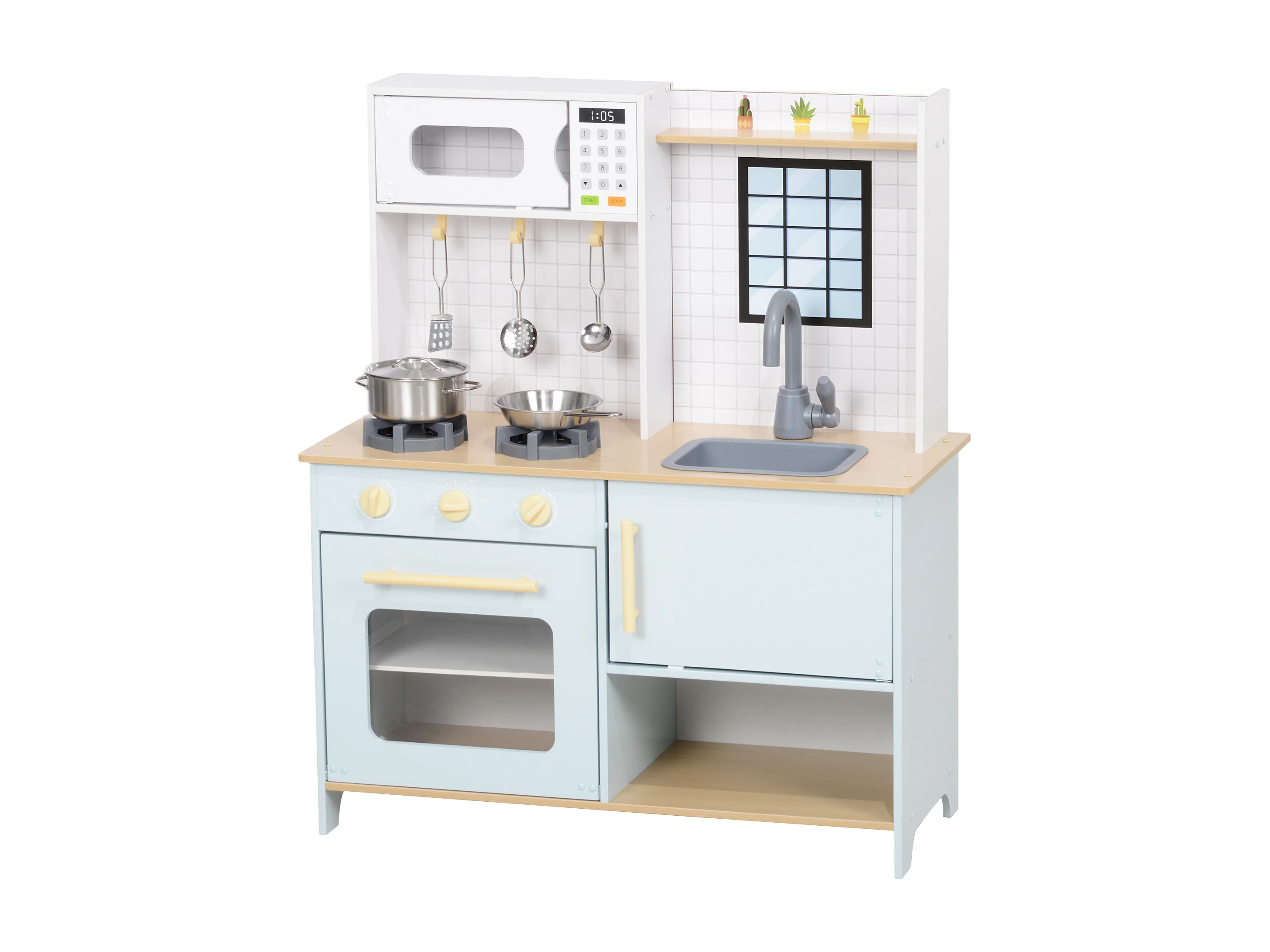 Cucina giocattolo in legno con microonde lavandino frigorifero