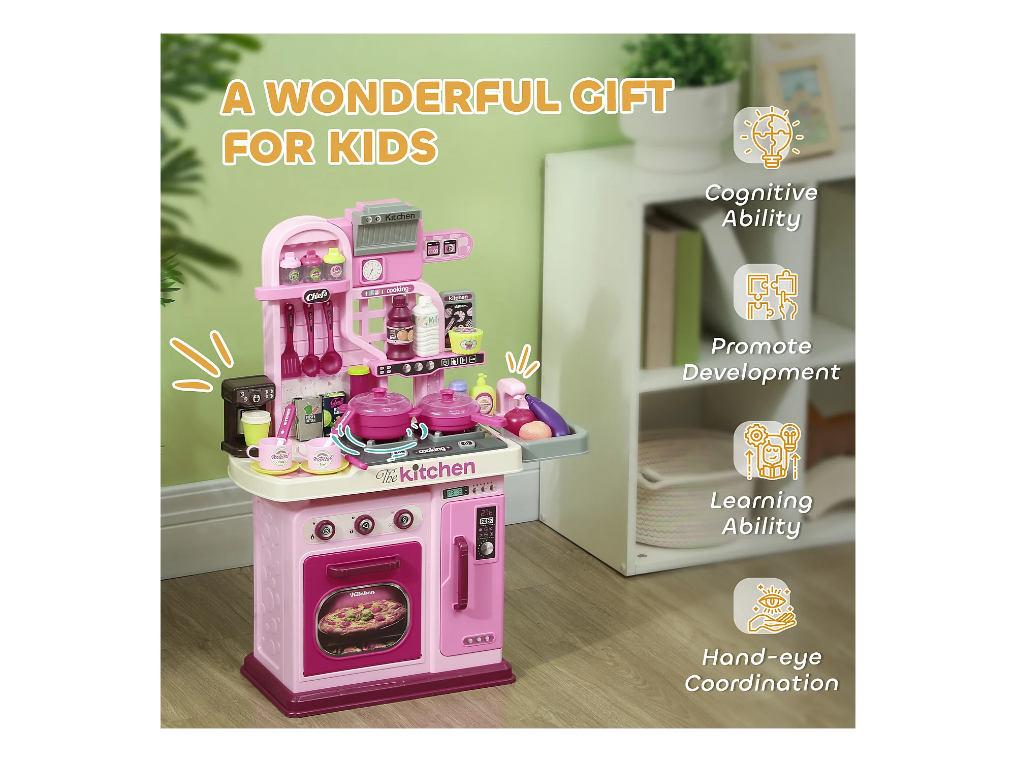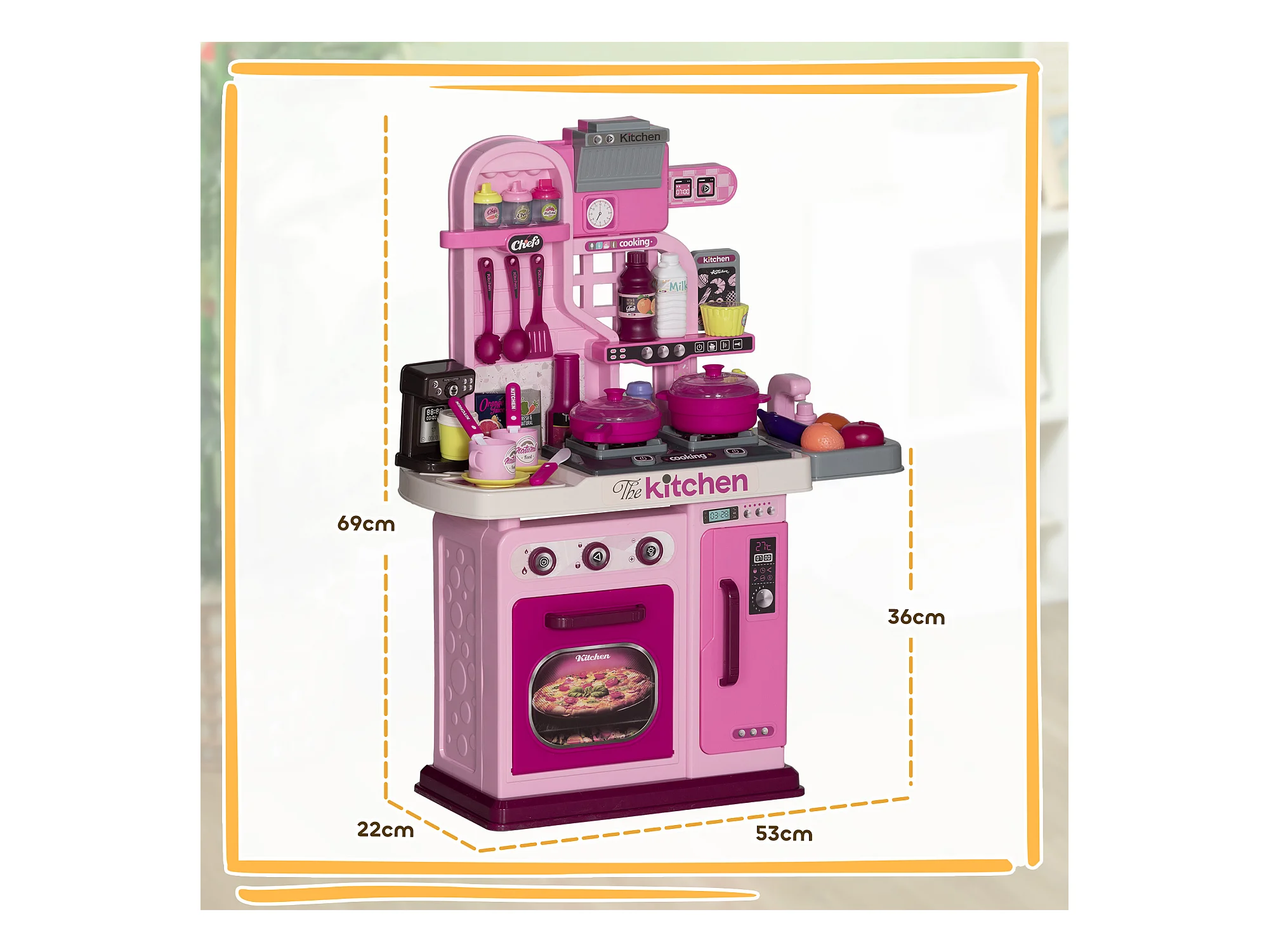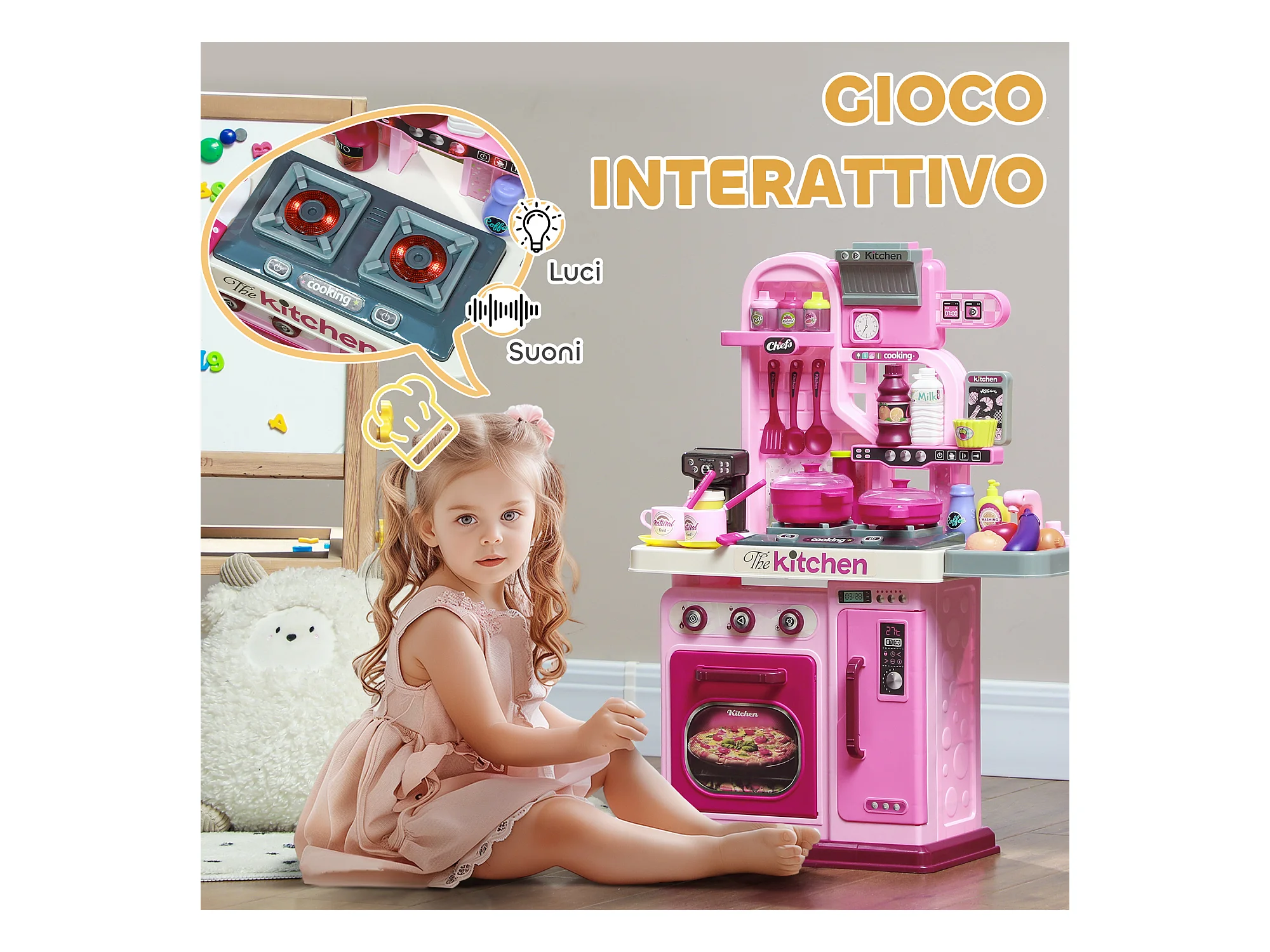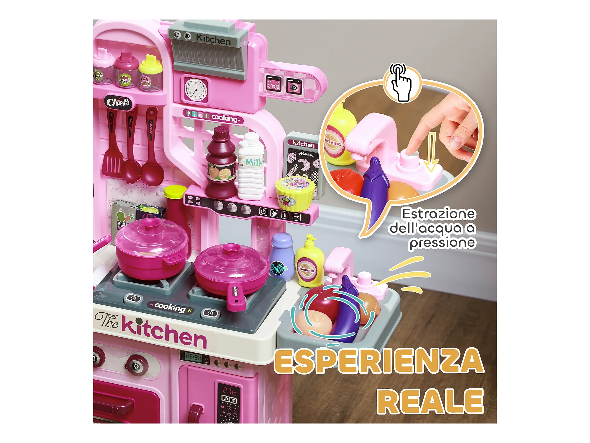 Cucina giocattolo per bambini con 38 accessori e suoni realistici rosa