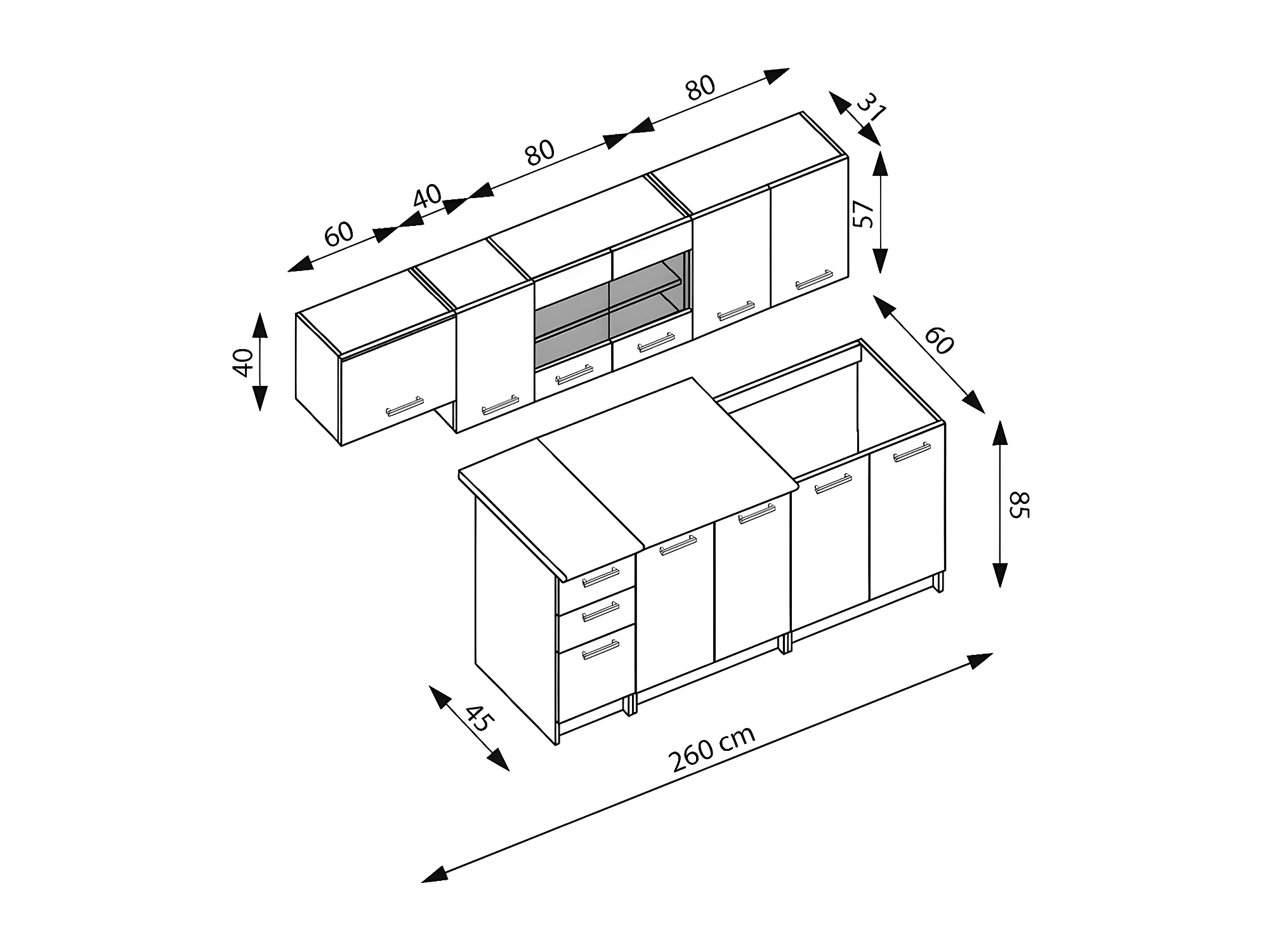 Cucina completa - pensili e basi - noce 260cm Chuck