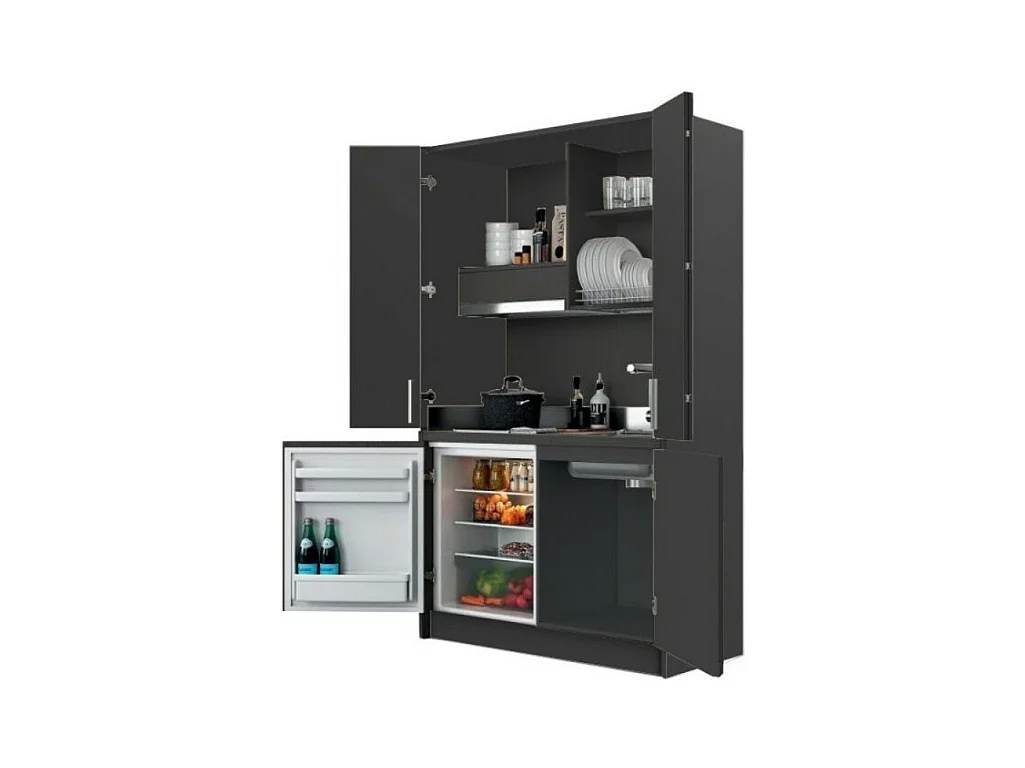 Cucina salvaspazio a scomparsa Fold Evolution colore antracite e elettrodomestici inclusi 125x62x208H