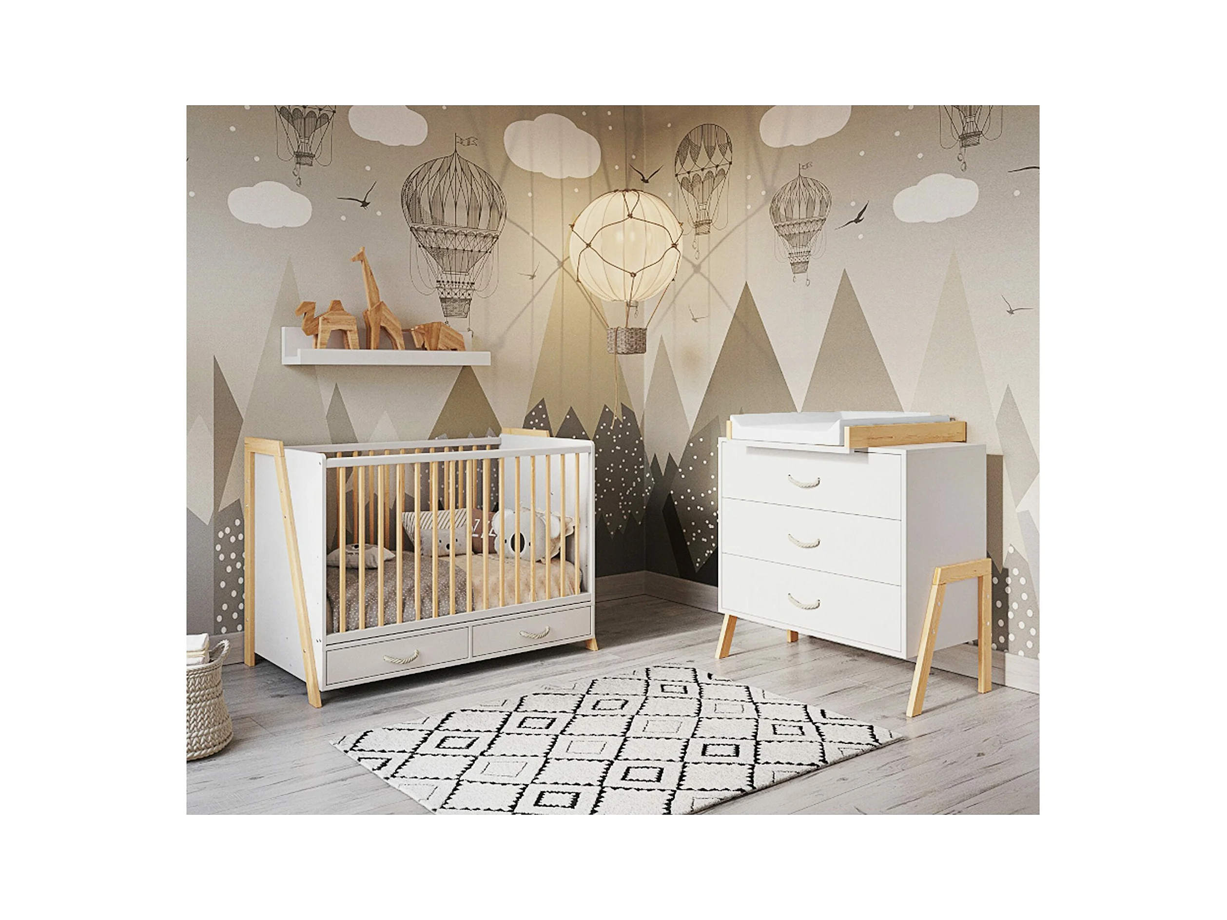 Lettino bamabini con fasciatoio legno - Bianco - 60 x 120