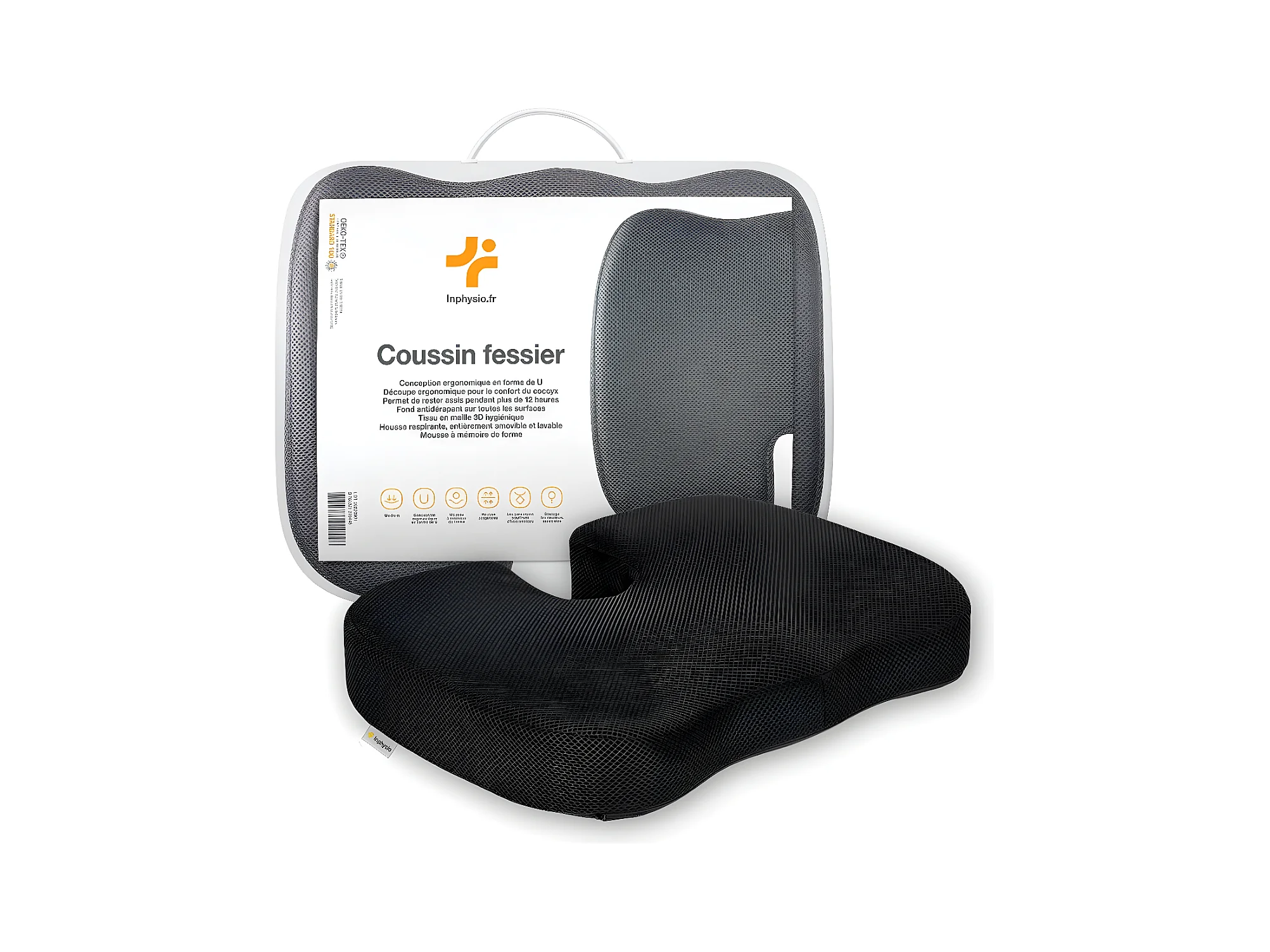 Cuscino Ergonomico da Seduta a Forma di U - Carbone di Bambù - 46x37x6 - INPHYSIO