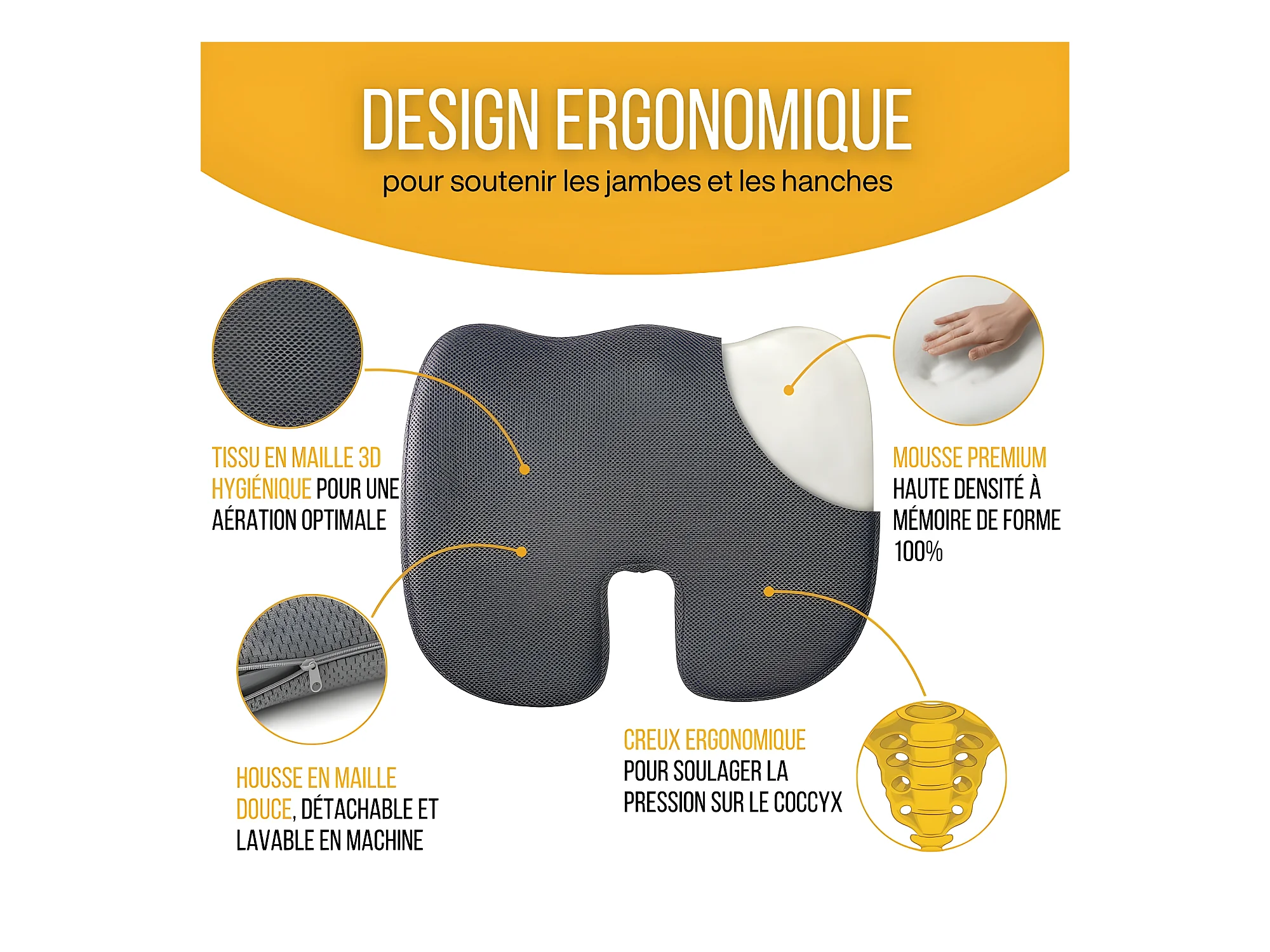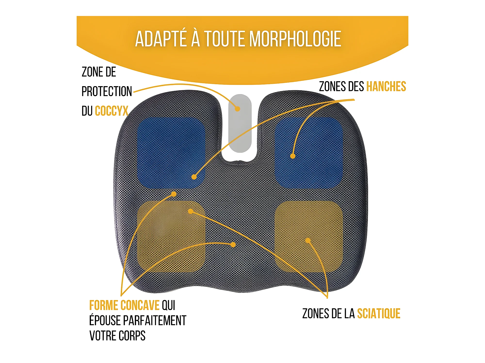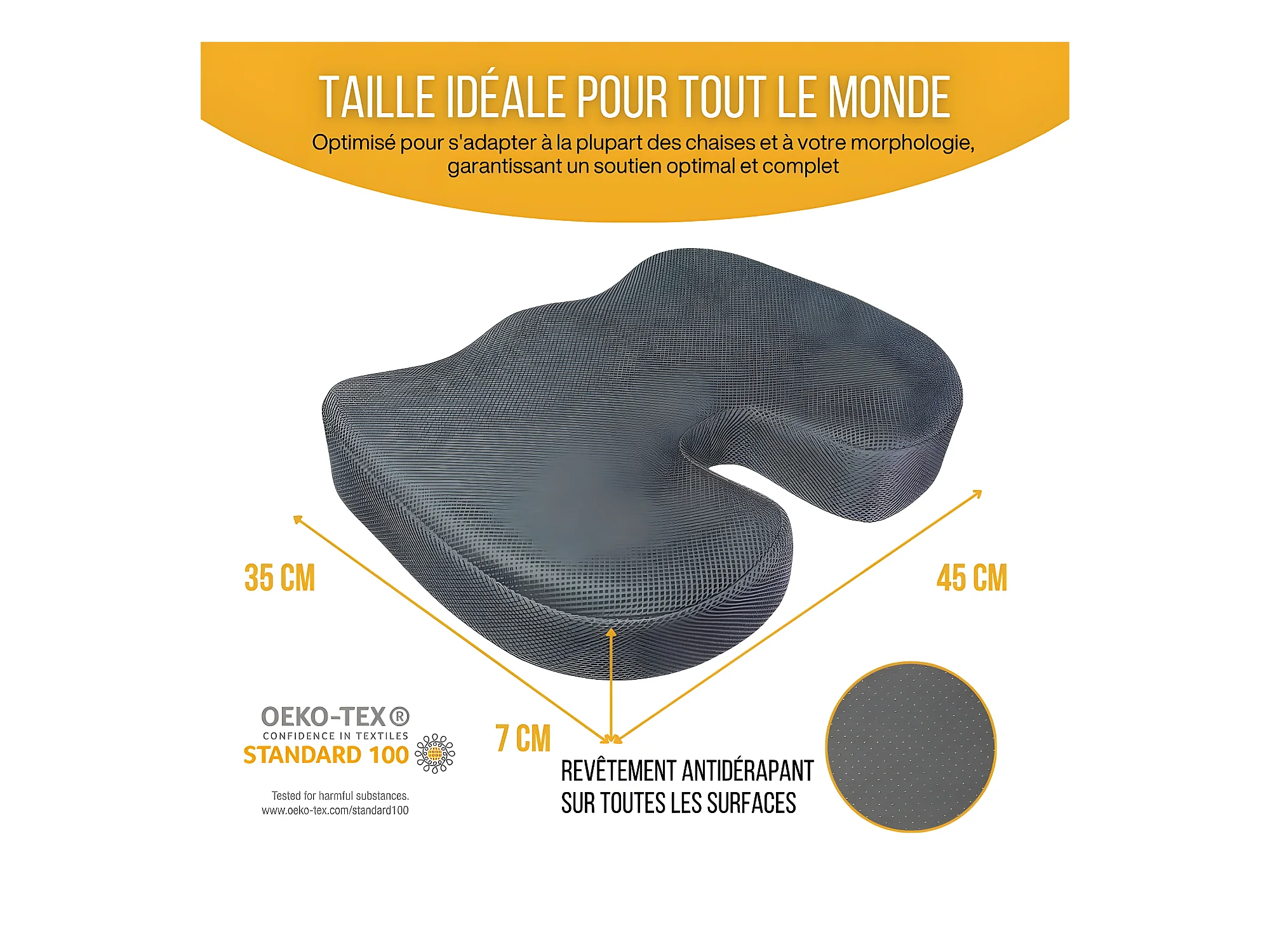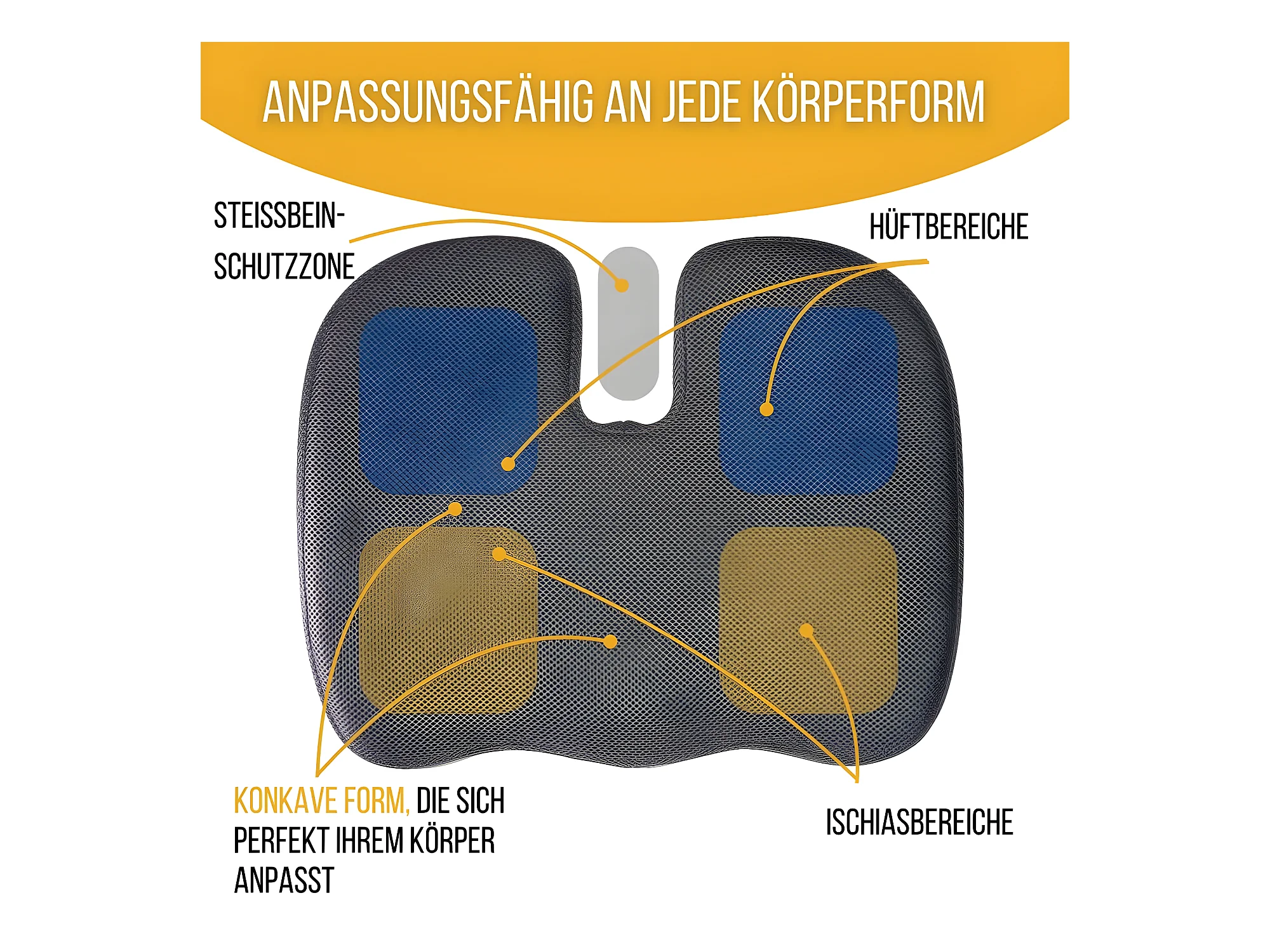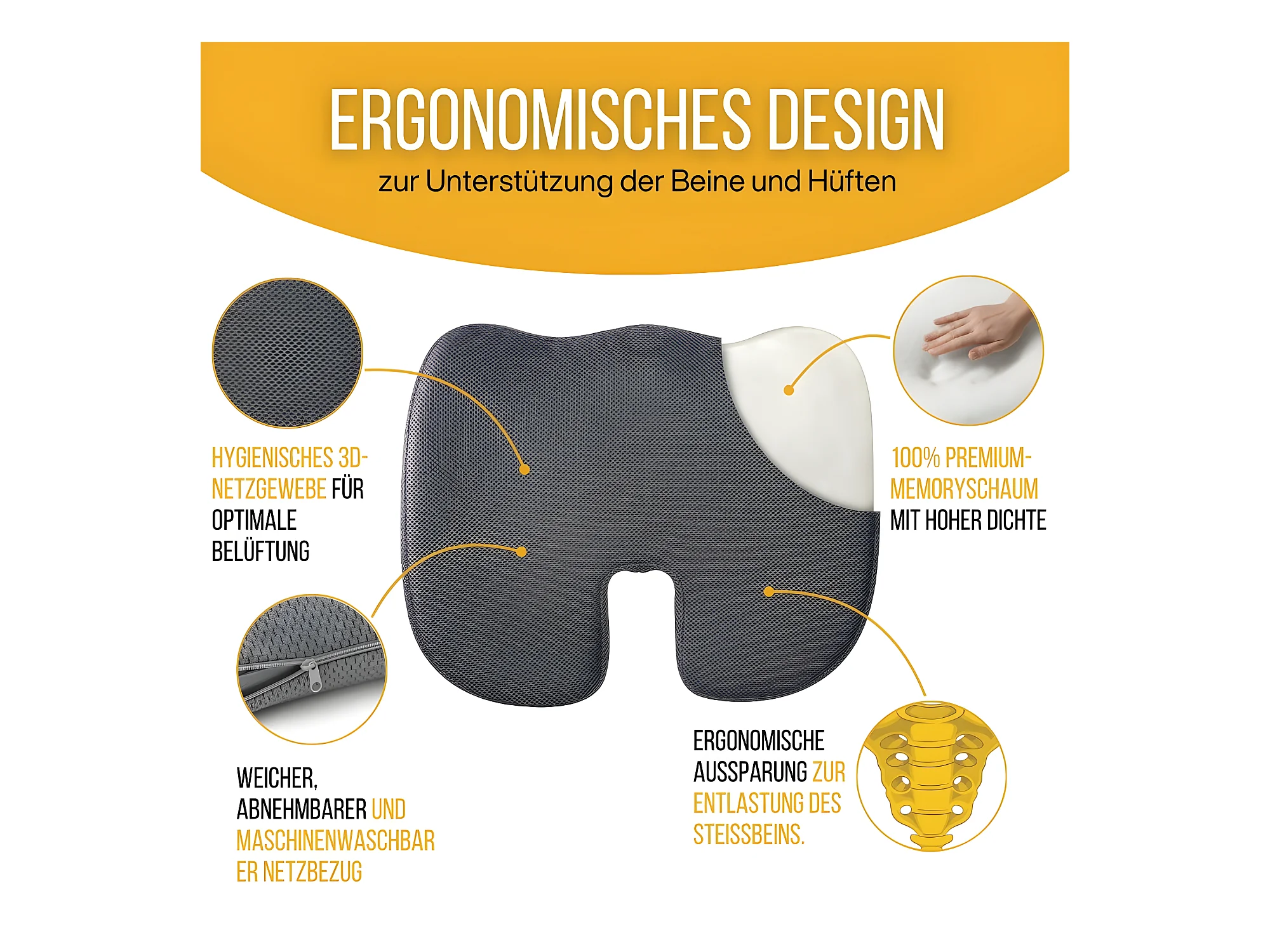 Cuscino Ergonomico a Forma di U per il Coccige - 45x35x7 - CUSCINO GLUTEI