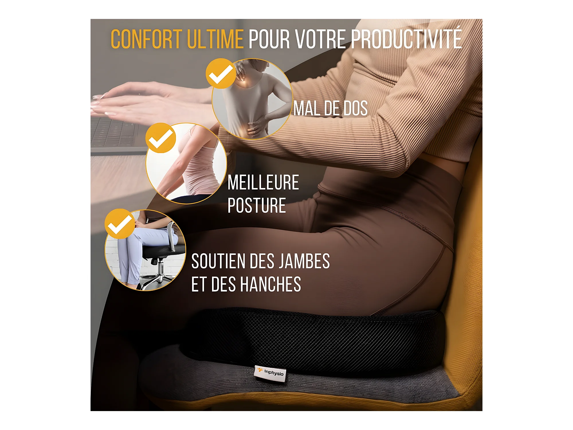 Cuscino da Seduta Ergonomico in Schiuma a Memoria di Forma - 45x37x9 - INPHYSIO
