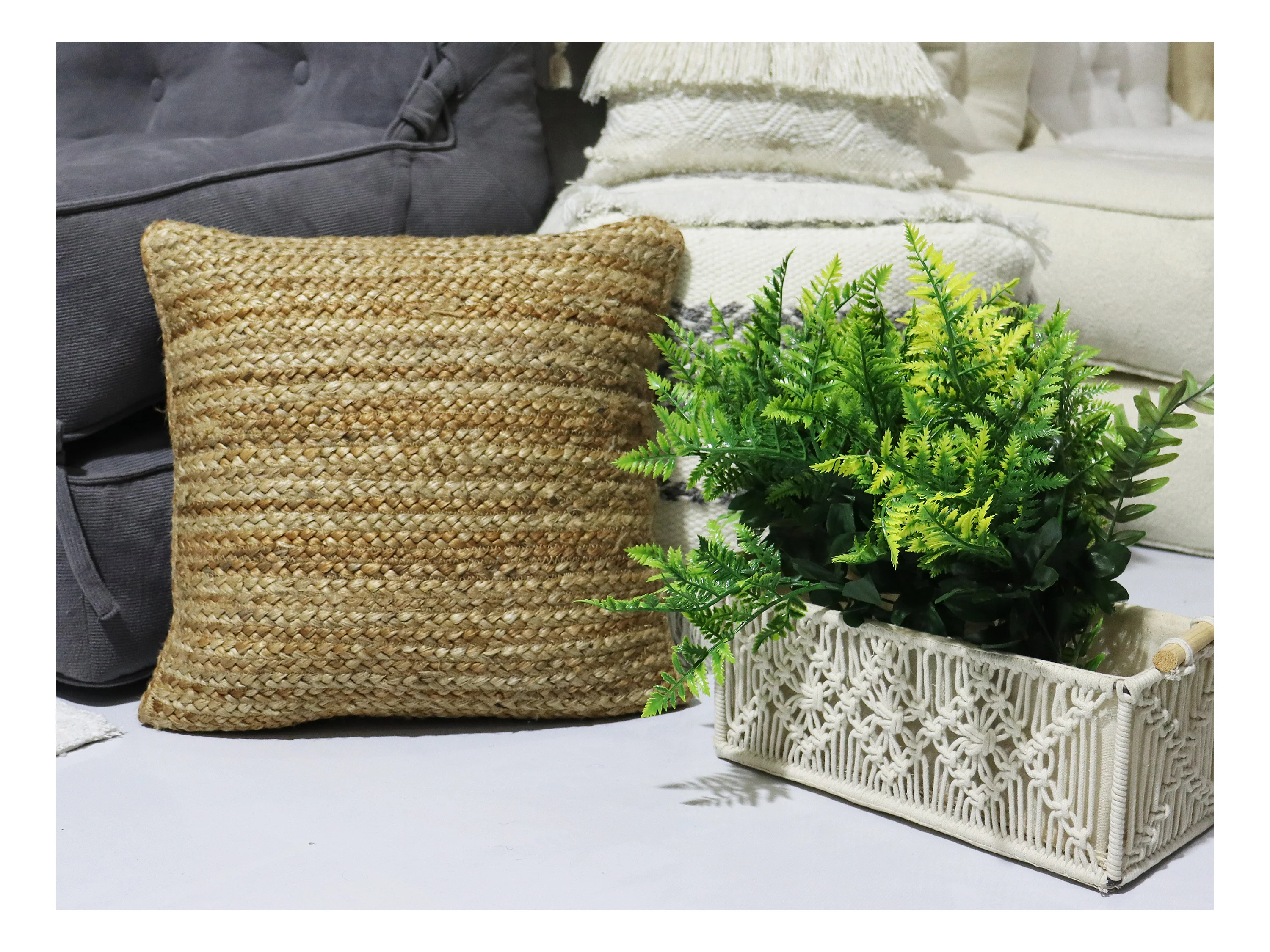 Cuscino intrecciato 100% Juta 60 x 60 cm Naturale - Lotto di 2 - ZAMBAI