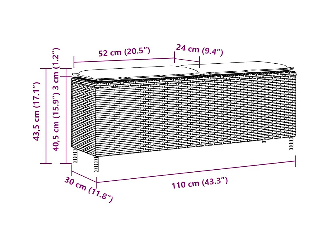 Cuscino per panca da giardino grigio chiaro 110x30x40,5 cm in resina intrecciata