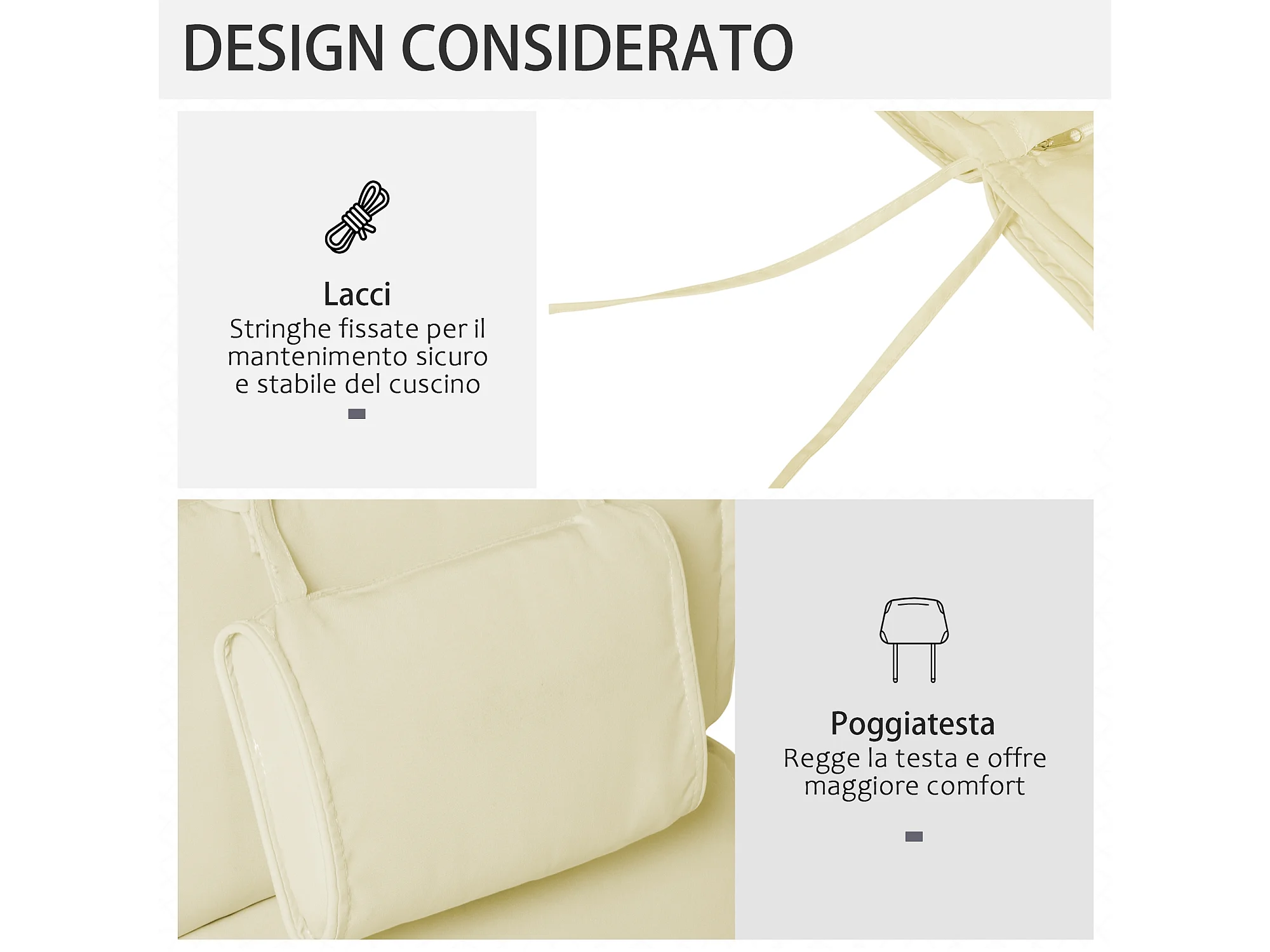 Cuscino per sdraio lettino prendisole da giardino solo cuscino 198x53x5cm bianco crema