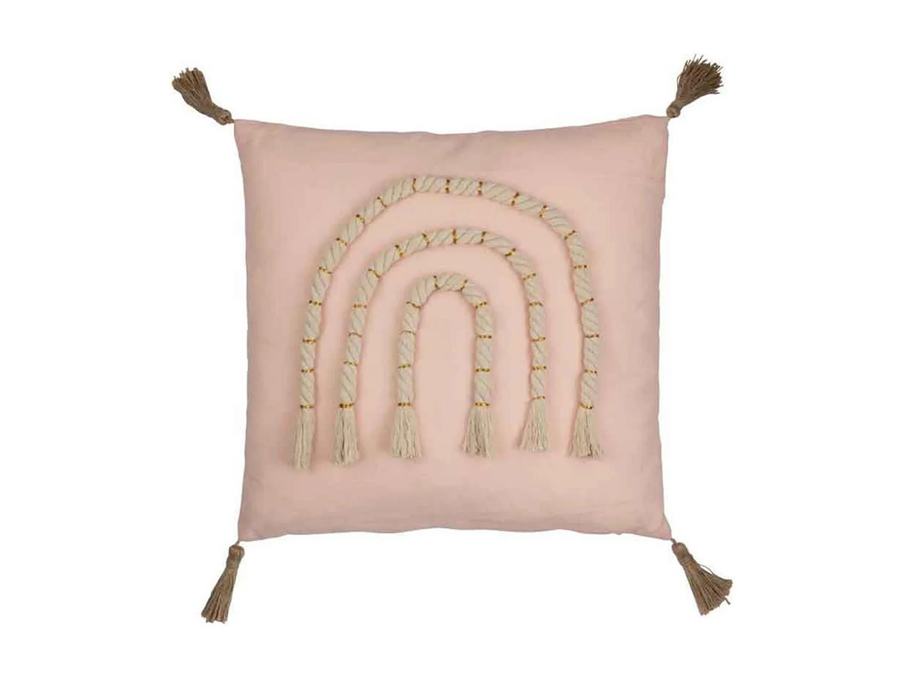 Cuscino rettangolare con frange in cotone rosa 60x40cm