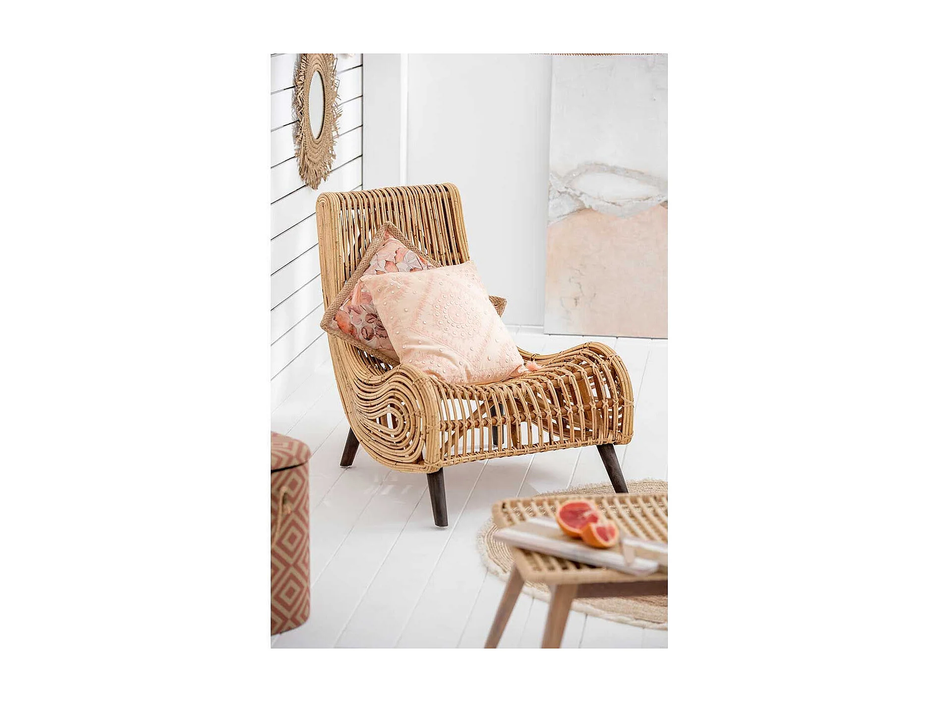 Cuscino quadrato in rafia naturale 88x88 cm
