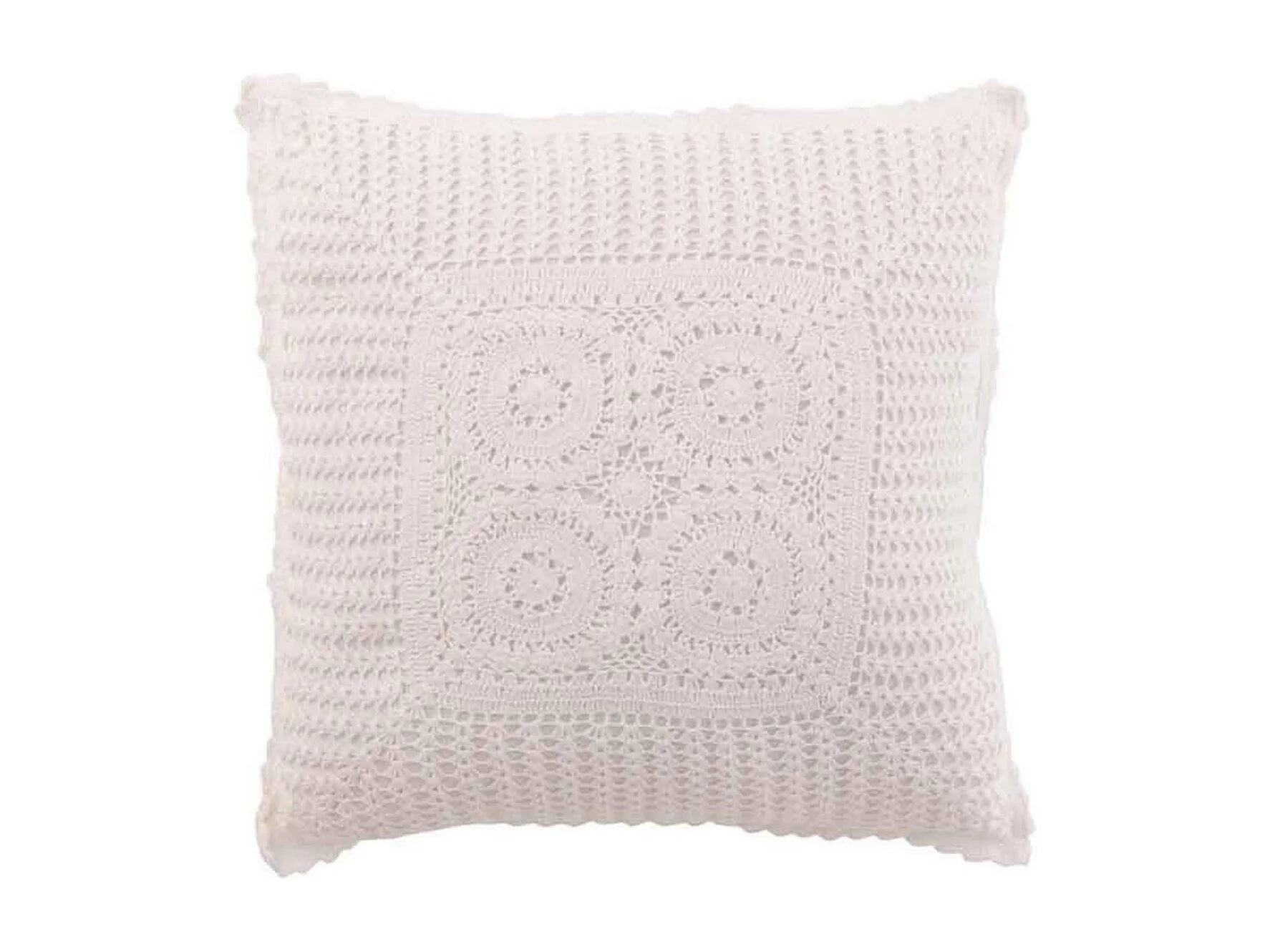 Cuscino quadrato con pizzi in cotone bianco 43x43 cm