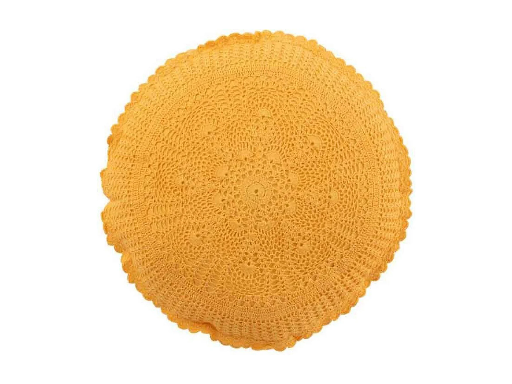 Cuscino rotondo con pizzo in cotone ocra 38x38cm