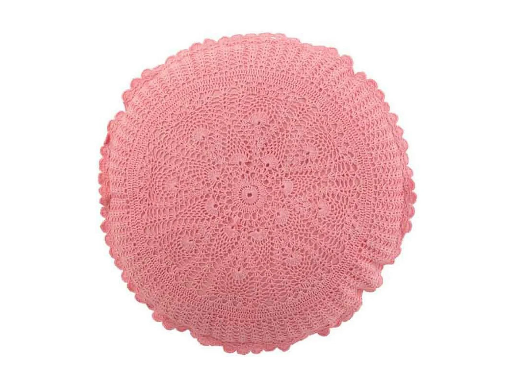 Cuscino rotondo con pizzo in cotone rosa 38x38cm