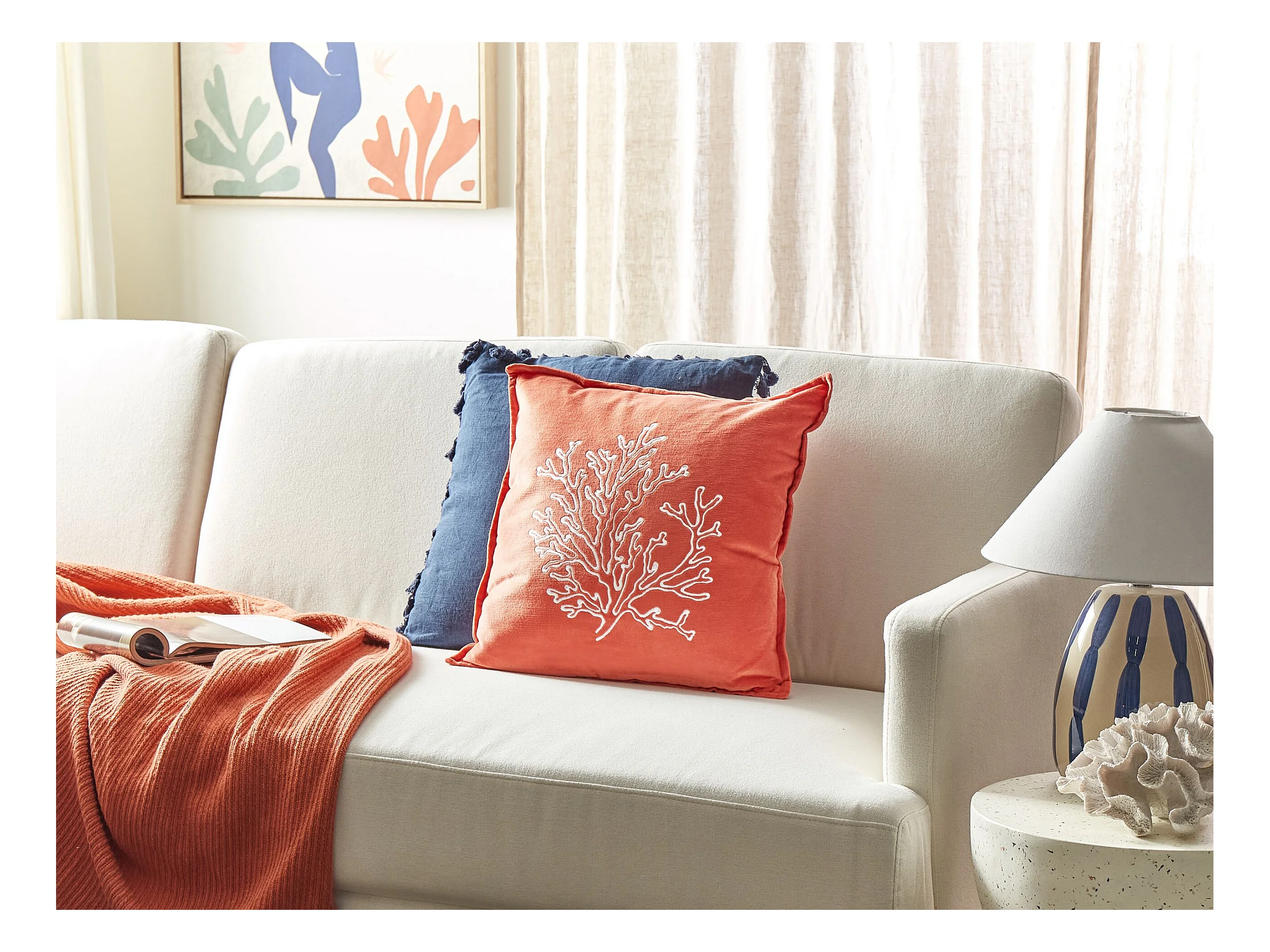 Cuscino decorativo NORI Velluto 45 x 45 cm Corallo Trama di piante