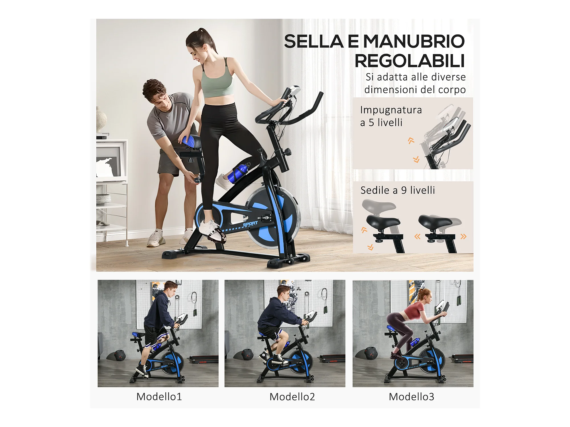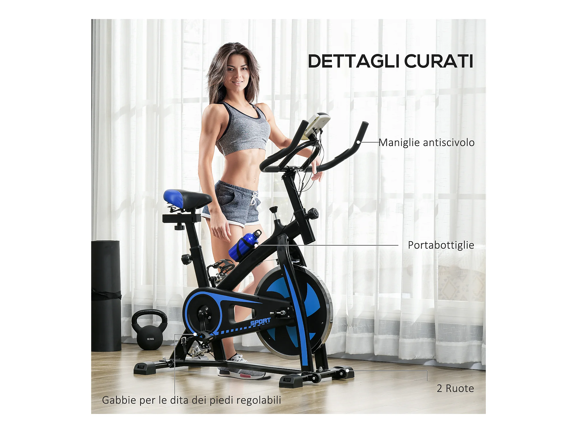 Cyclette da casa regolabile con monitor lcd in acciaio e abs blu