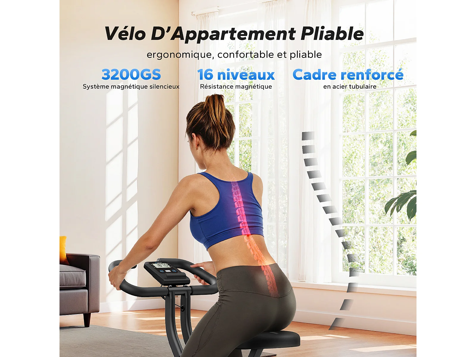 Cyclette pieghevole MERACH, compatta e silenziosa, 16 livelli magnetici, schermo LCD, supporto tablet, uso domestico