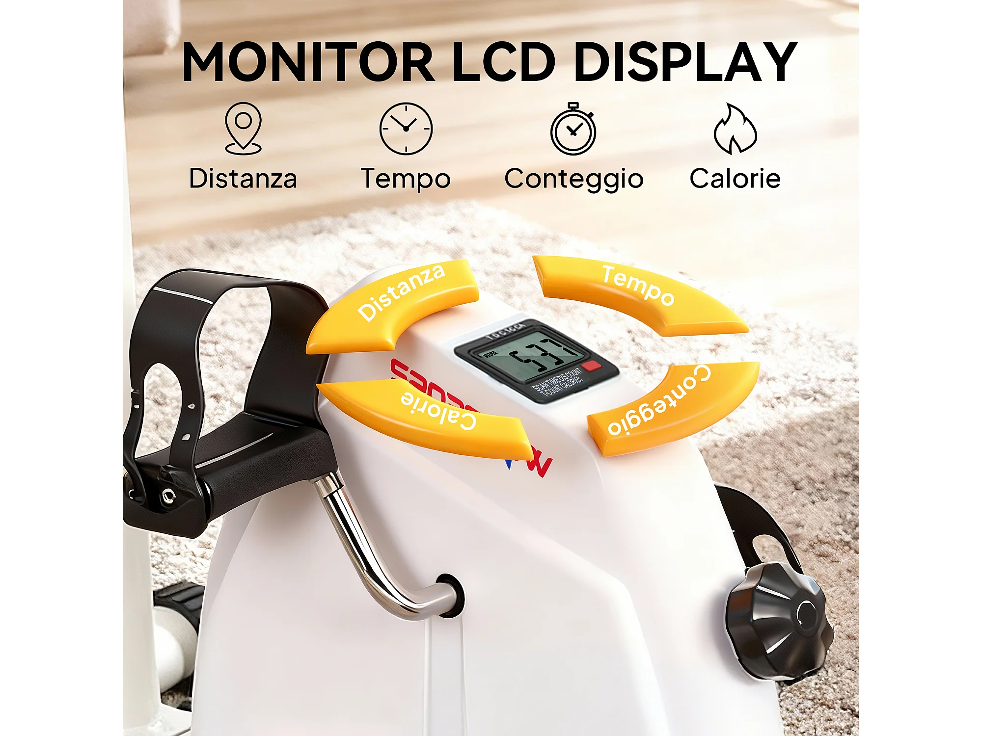 Cyclette regolabile in altezza con trasmissione a cinghia, display LCD, acciaio e ABS, giallo (45,5x100x101-113cm)