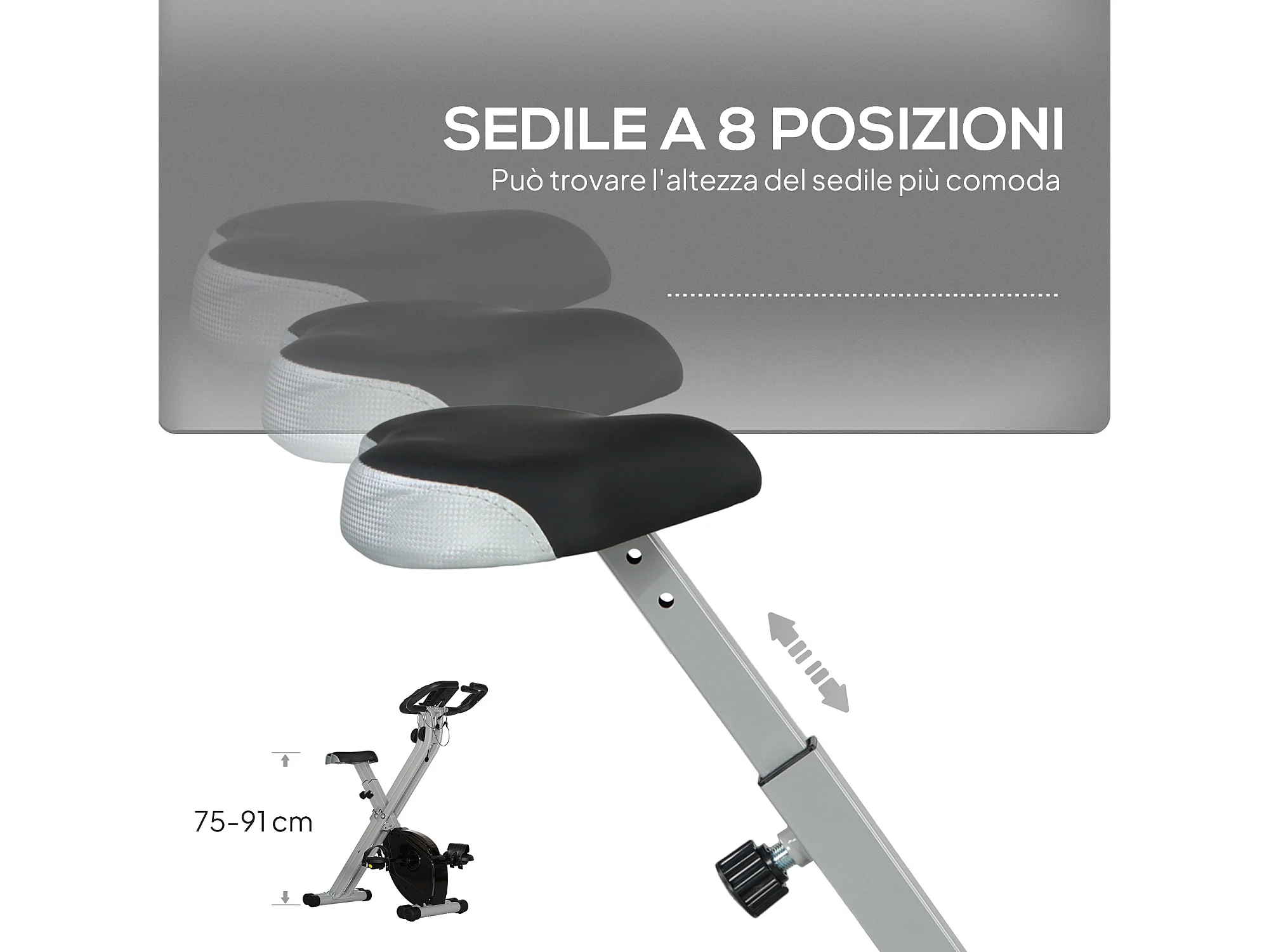 Cyclette da camera pieghevole a x 5 posizioni regolabili e 8 resistenze