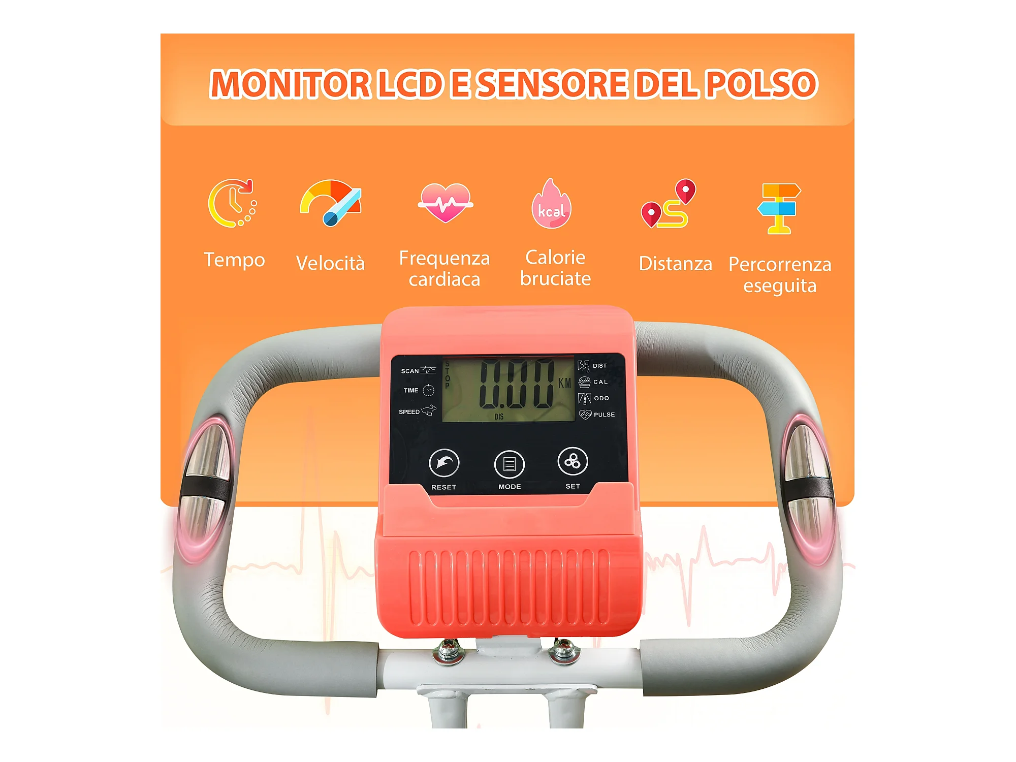 Cyclette con monitor lcd volano 15kg sellino e manubrio regolabili