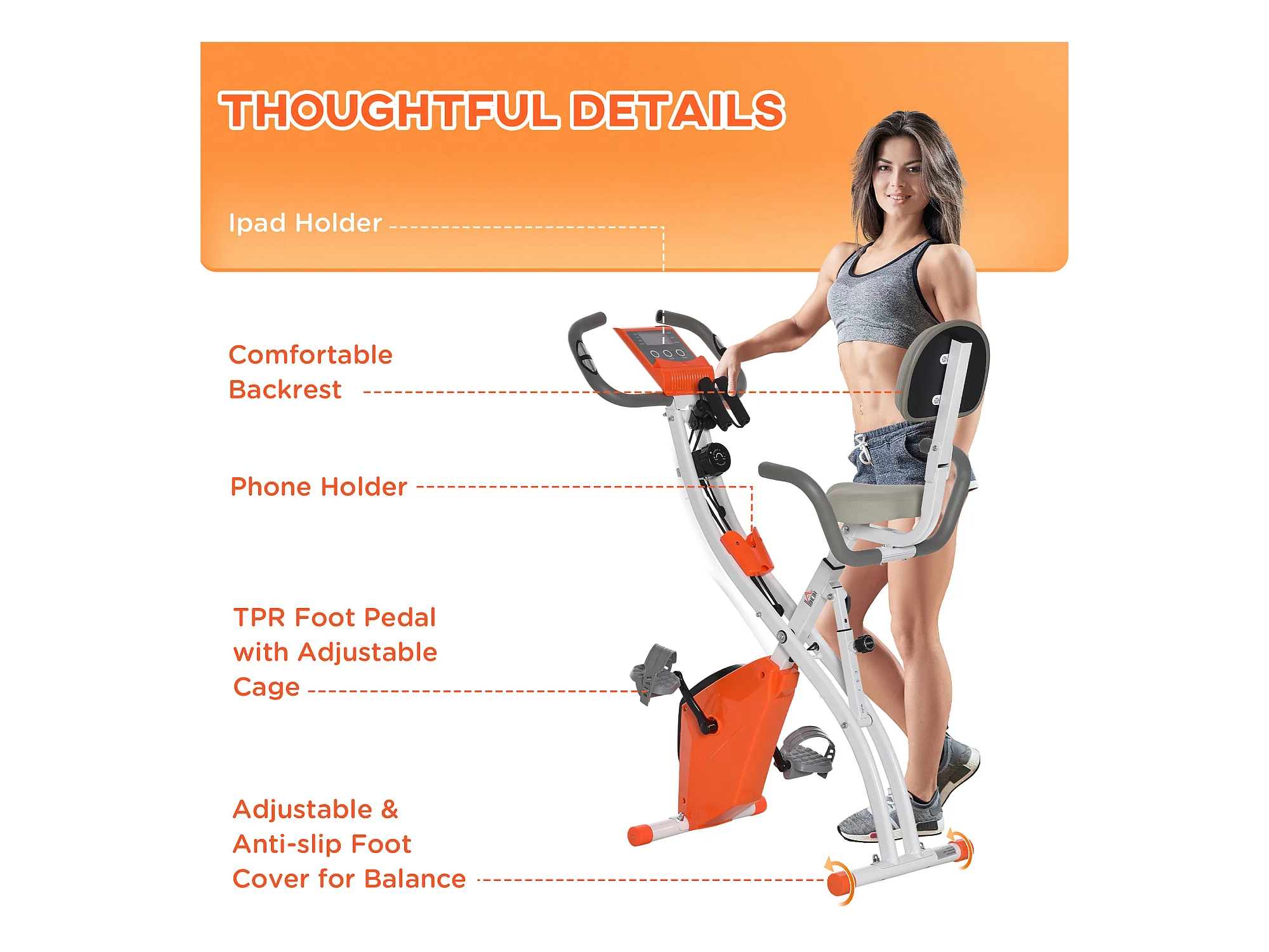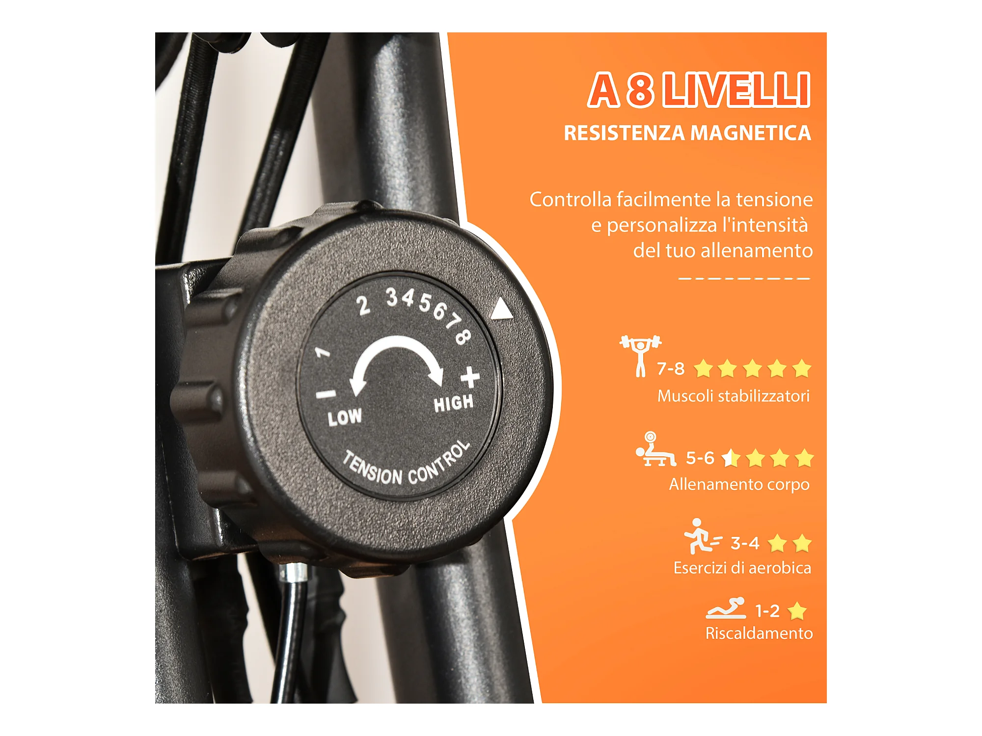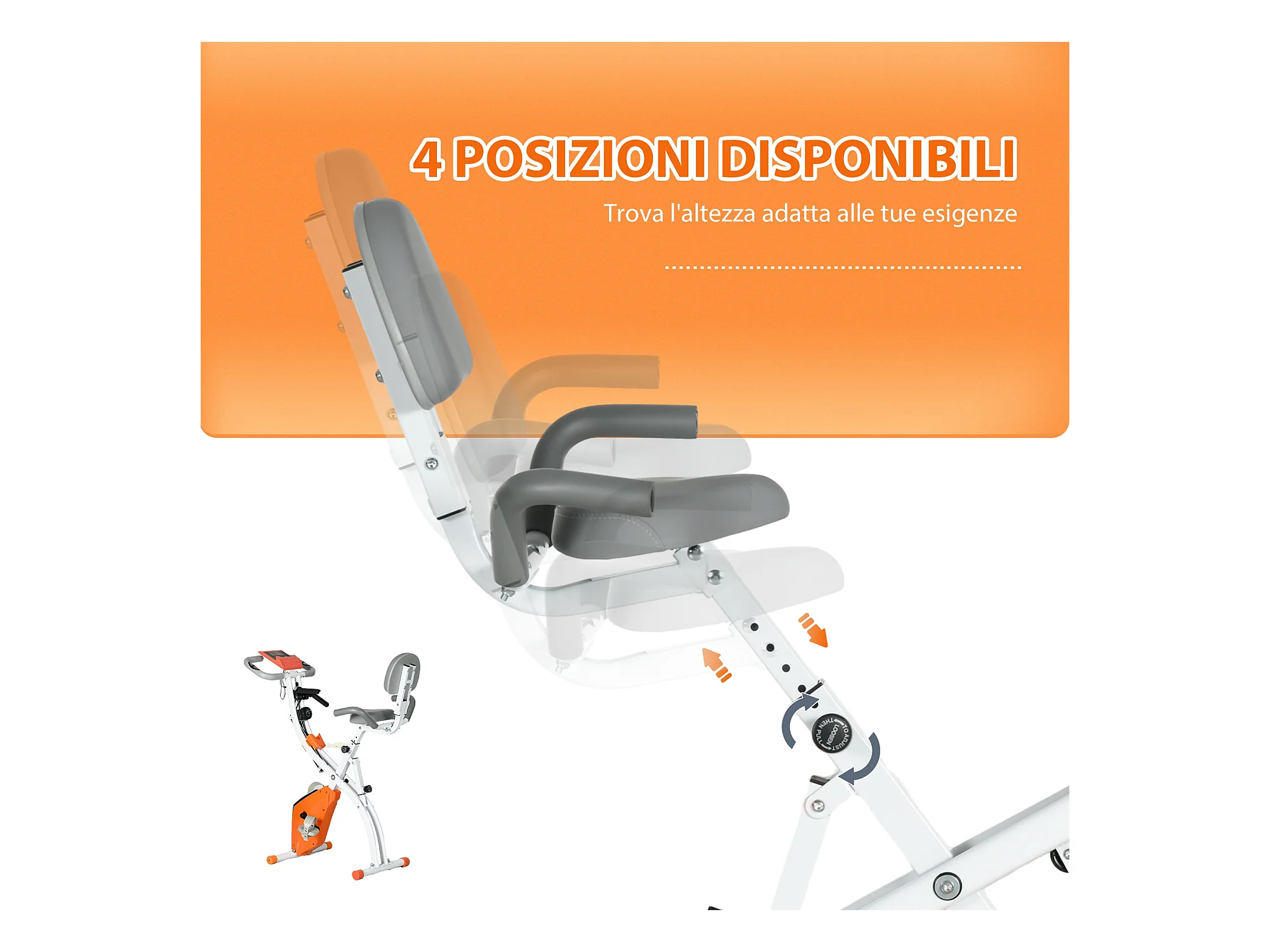 Cyclette pieghevole resistenza 8 livelli elastici per braccia arancione