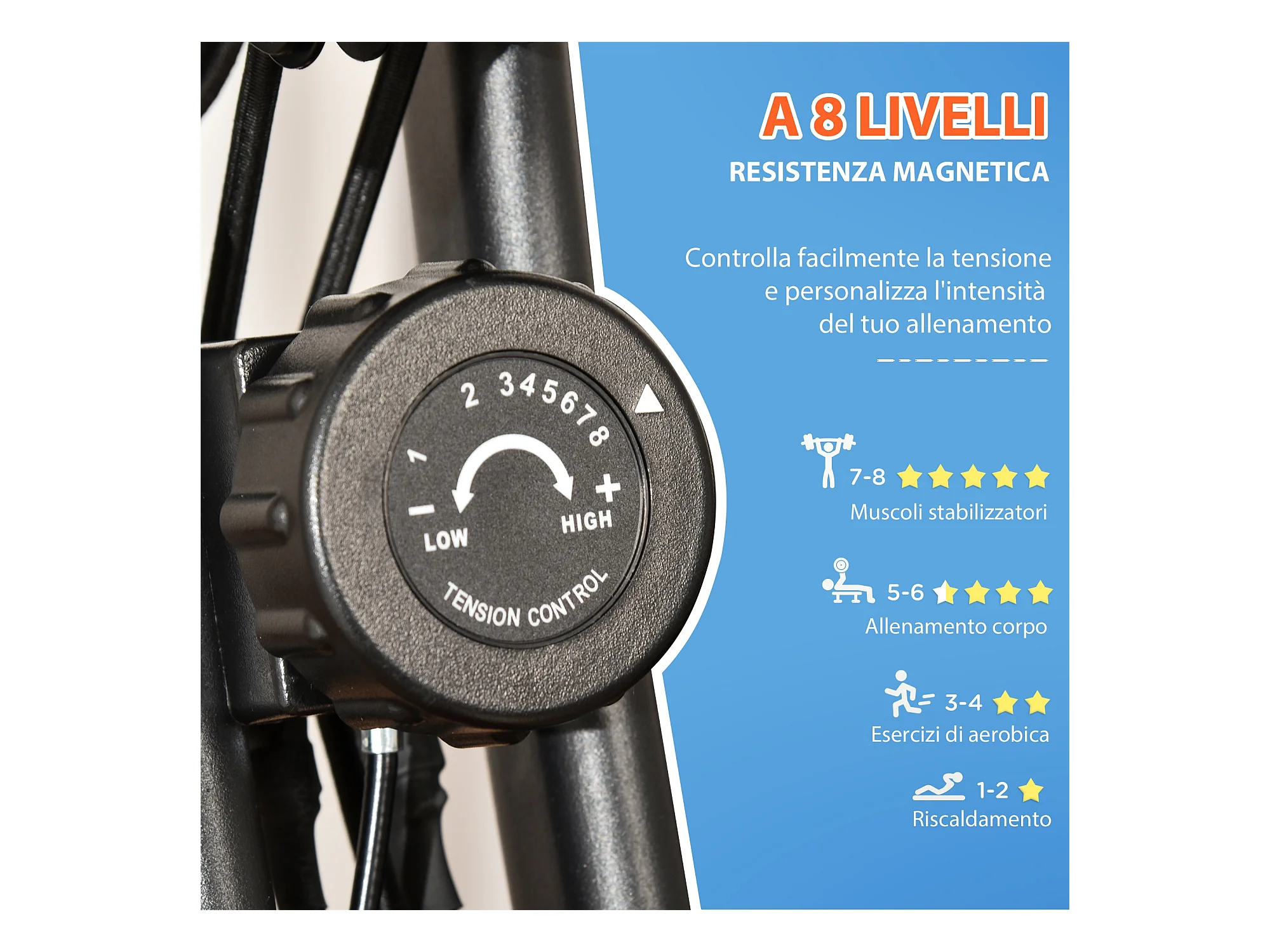 Cyclette pieghevole 2 in 1, resistenza magnetica a 8 livelli, acciaio, nero (105x48x118 cm)